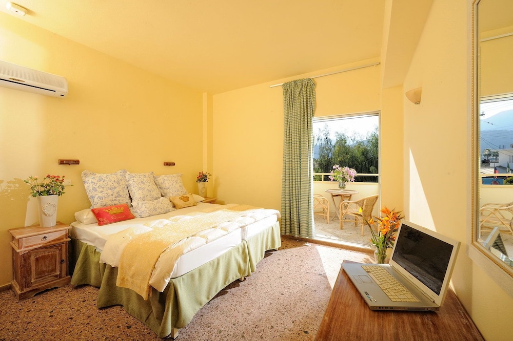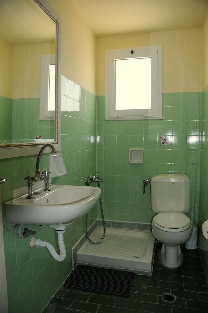 Værelset vi fik var rimelig standard med dobbeltseng (to enkelte), altan med udsigt over både vand, by og bjerge, tekøkken og lille badeværelset. Badet var i ringe stand, håndholdt bruser og meget lille - men det fungerede.