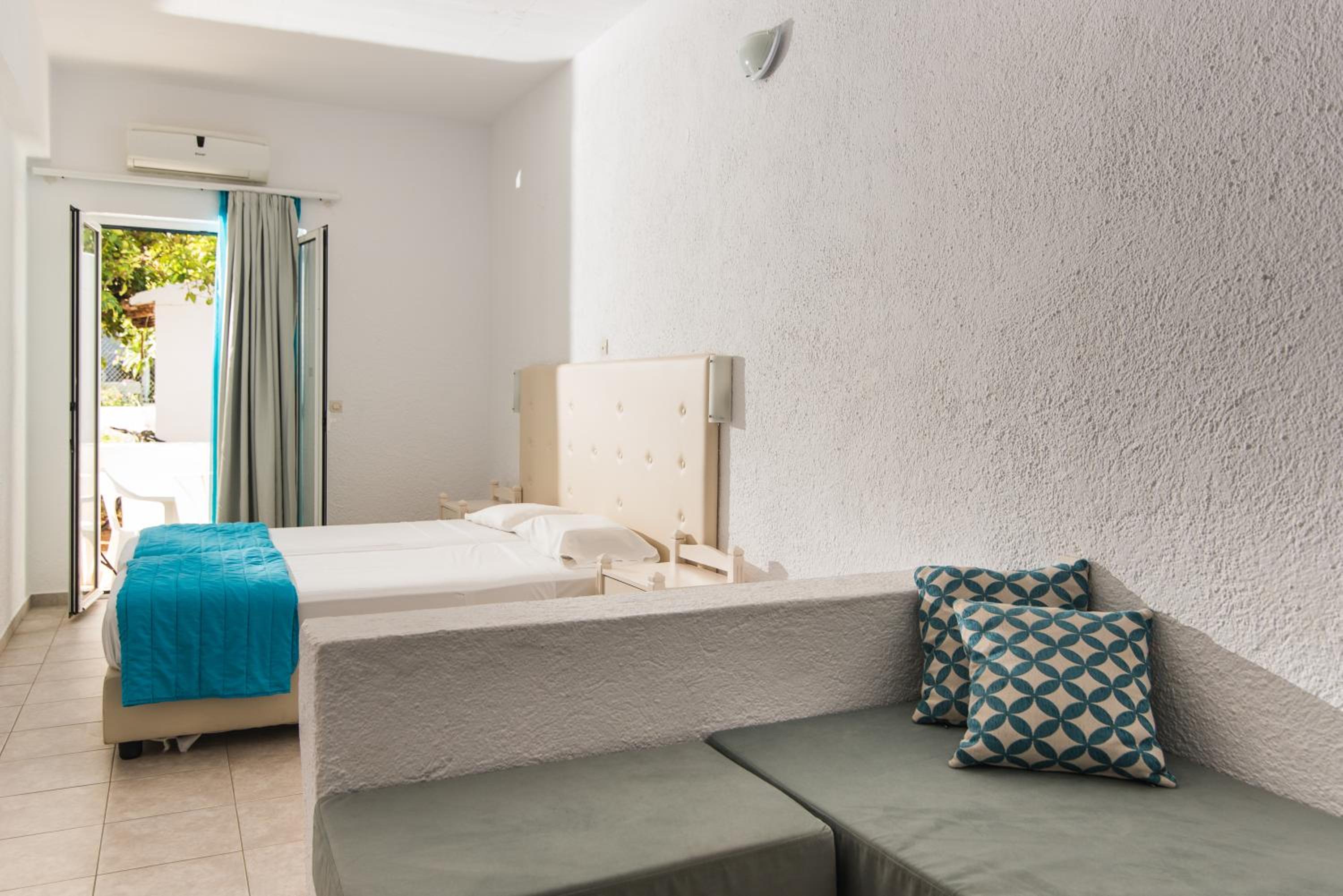 La struttura e’ troppo basica, non ci sono servizi a parte un bar dove servono la colazione e il cibo se si vuole mangiare li’, le camere non hanno nulla a parte un frigorifero. I letti non sono comodi e nella mia stanza c’era solo un cuscino fornito al check in. Inoltre in 3 giorni non sono mai stati cambiati gli asciugamani e la camera mai pulita, oltre al fatto che le porte e le chiavi sono troppo rumorose e non c’e’ insonorizzazione. Non sono mai riuscito a dormire , le camere danno sulla strada e una piscina covo di inglesi che urlano a qualunque ora del giorno e della notte con musica ad alto volume più gli ospiti giovani che hanno fatto casino fino a mattina inoltrata. La struttura dove sono le camere da’ un senso di abbandono, solo la zona piscina e’ un poco più curata.