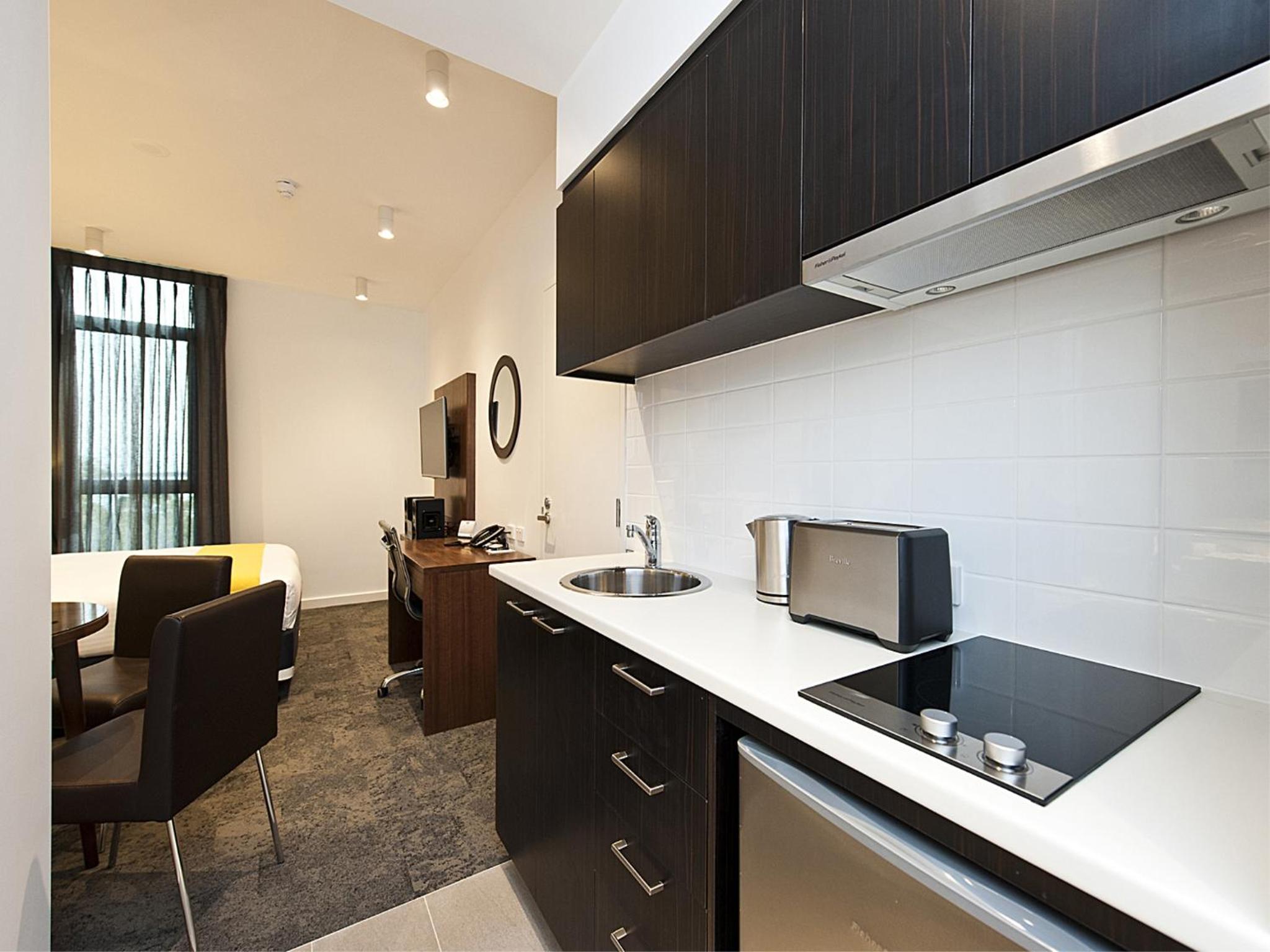 Quest Rockingham offers a range of stylish accommodations from studios to 2-bedroom apartments, all equipped with free WiFi and air-conditioning for a comfortable stay.