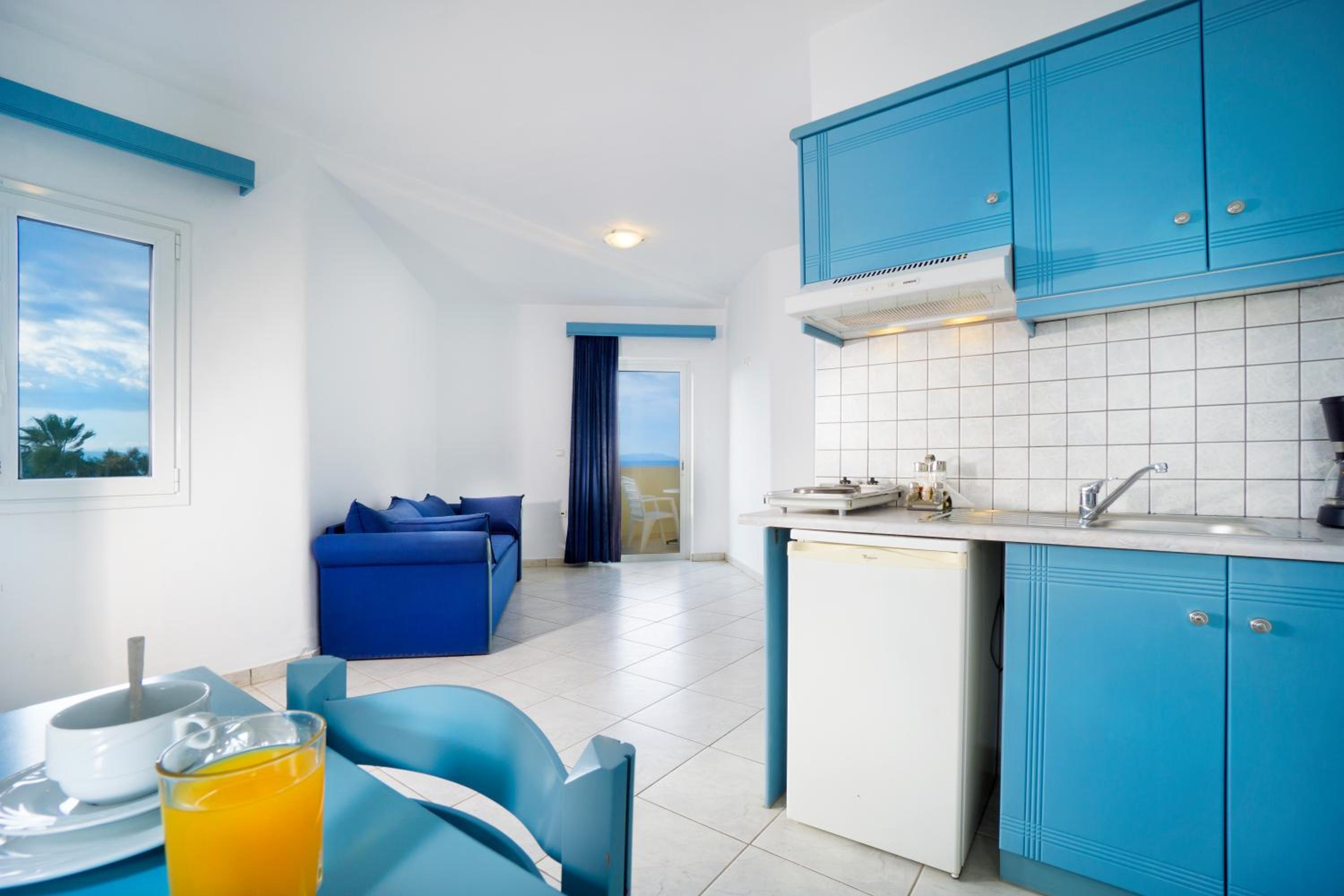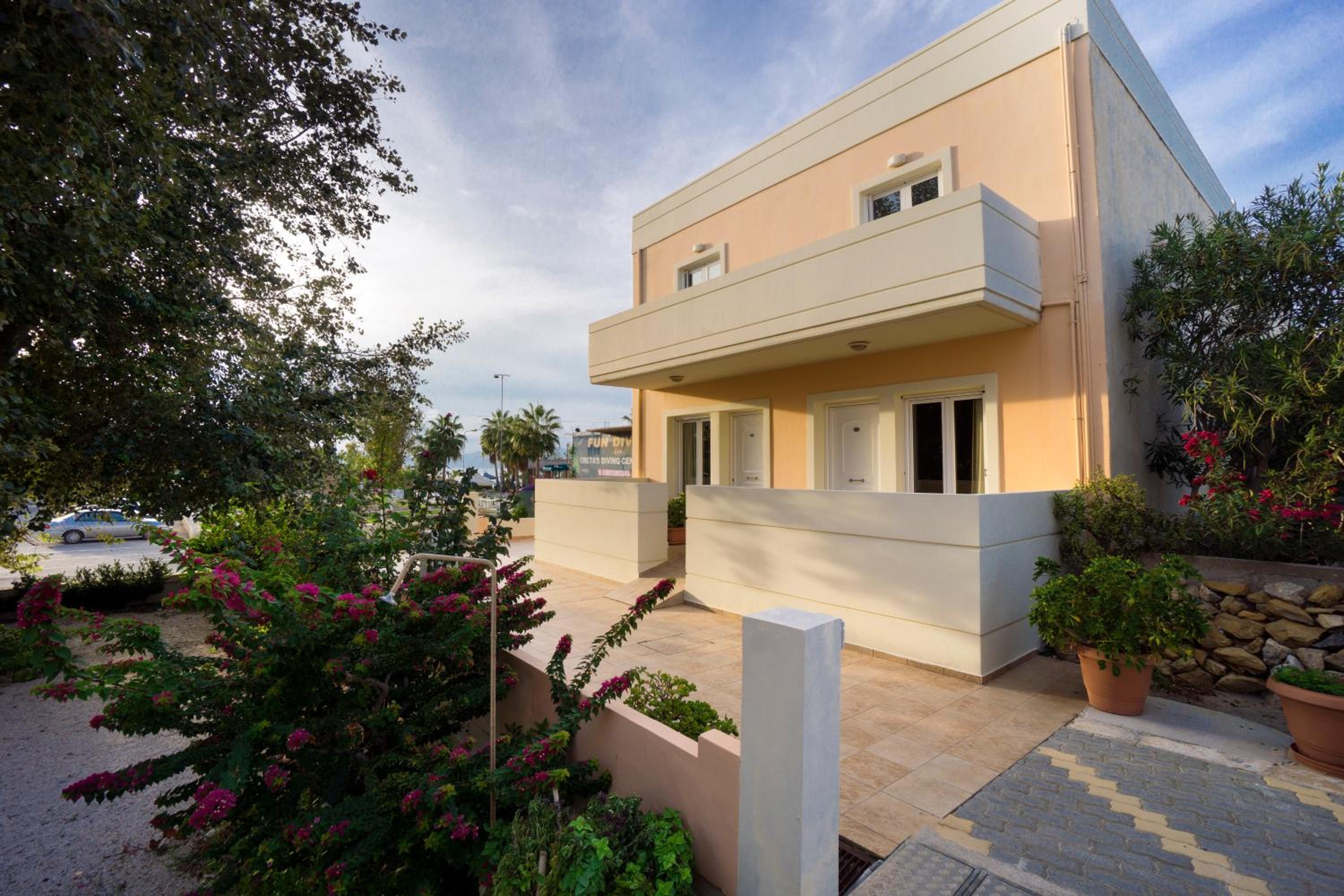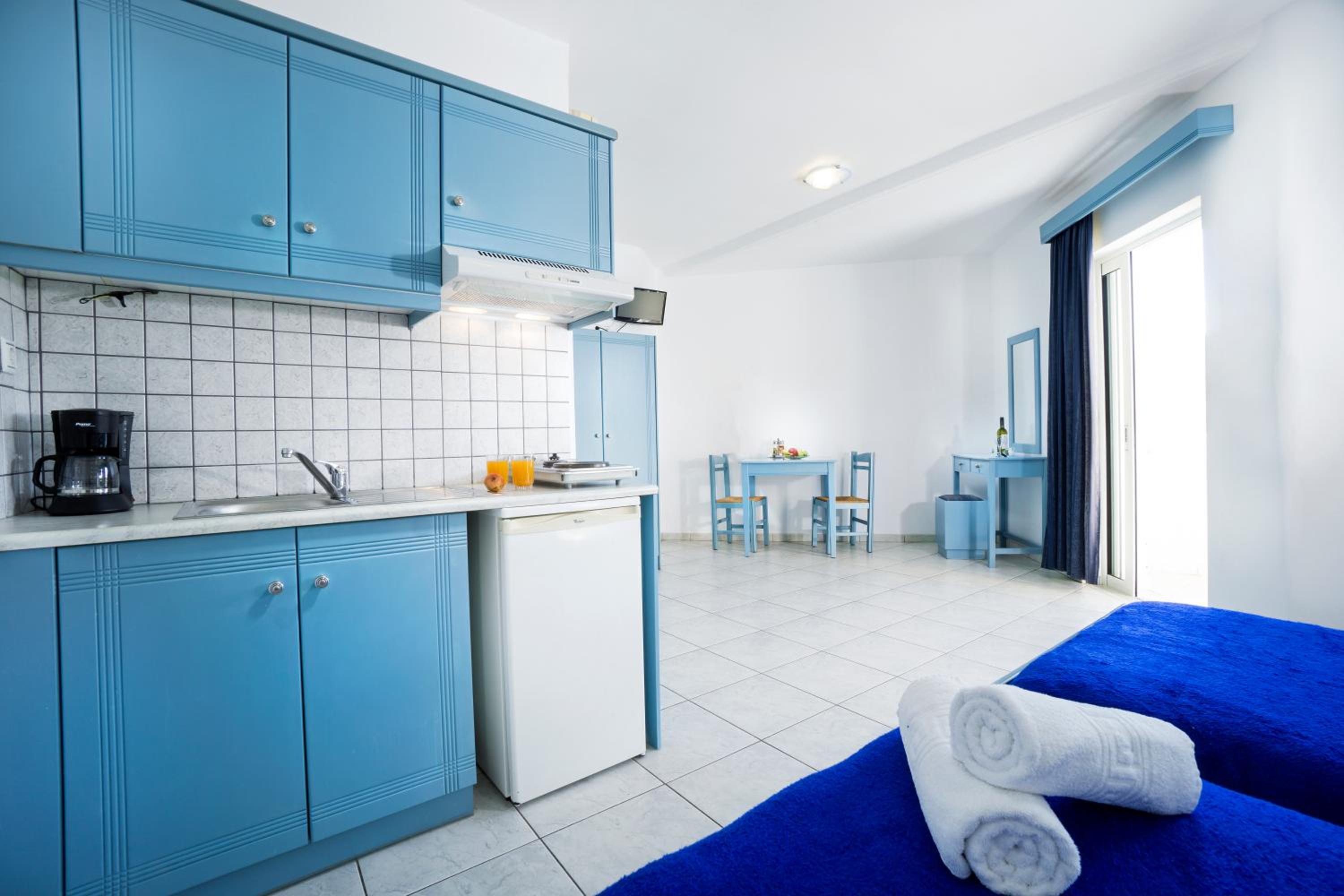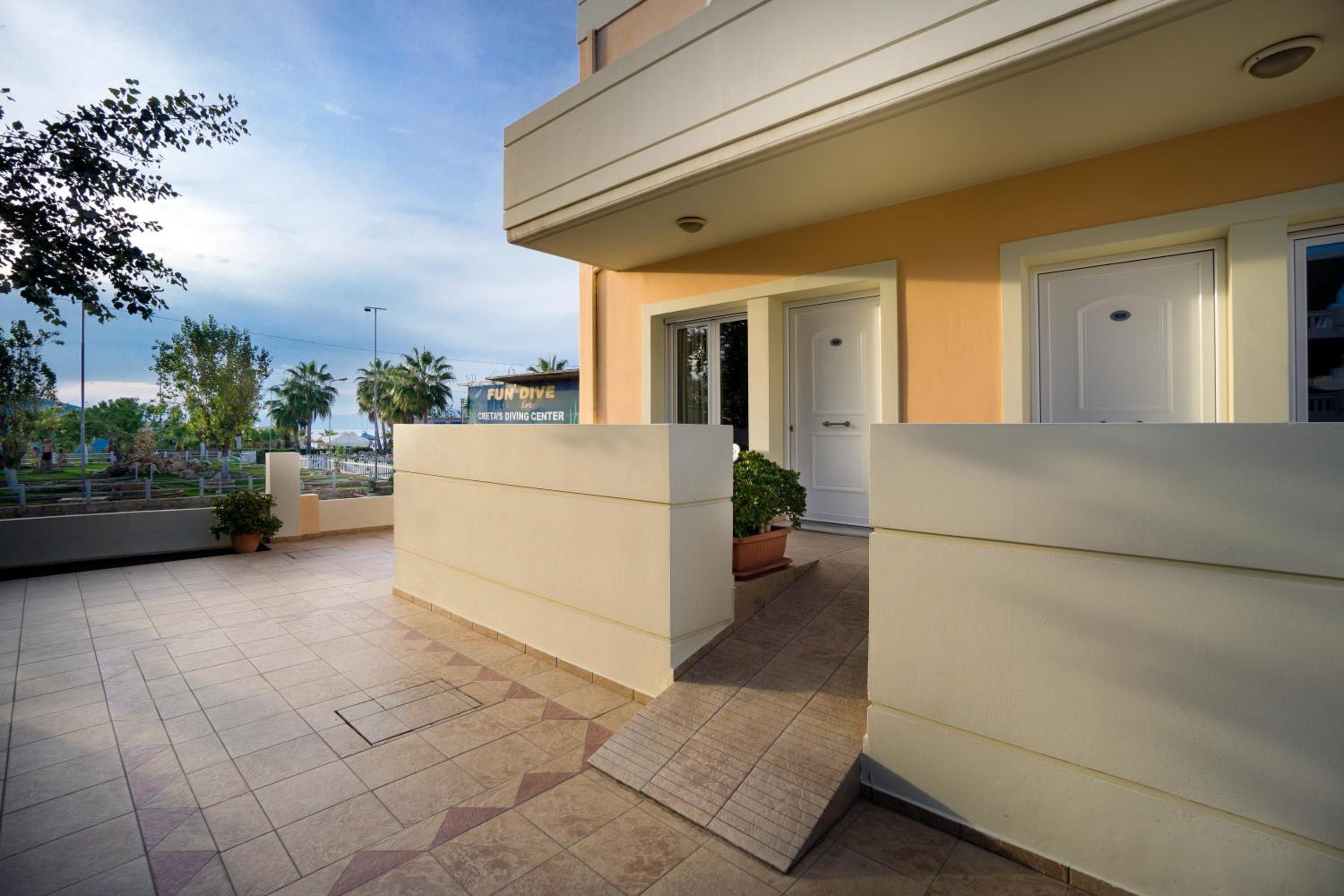 Indulge in our modern studios and apartments, all equipped with a kitchenette and balcony. Some units offer stunning views of the Cretan Sea for a truly memorable experience.