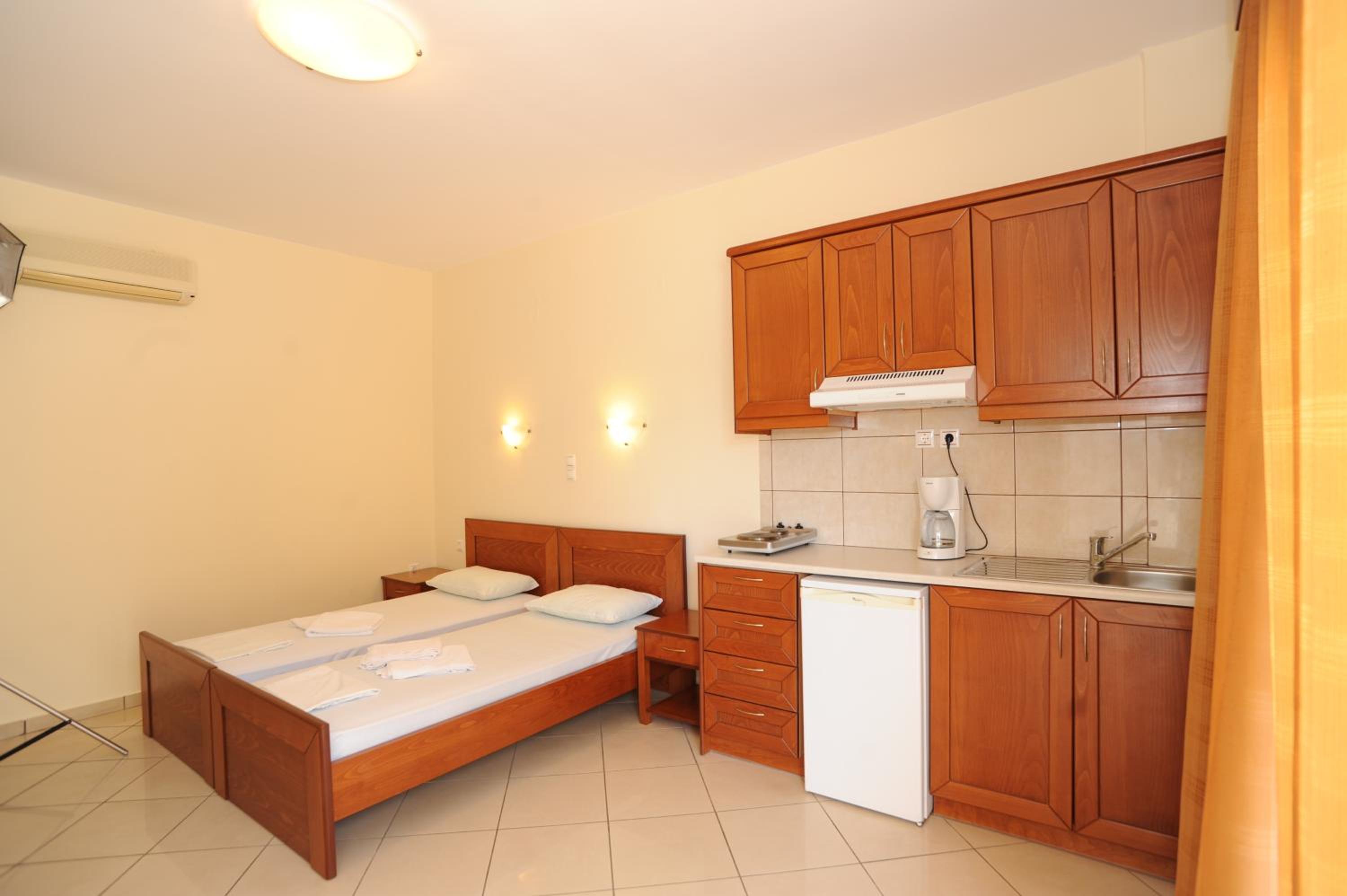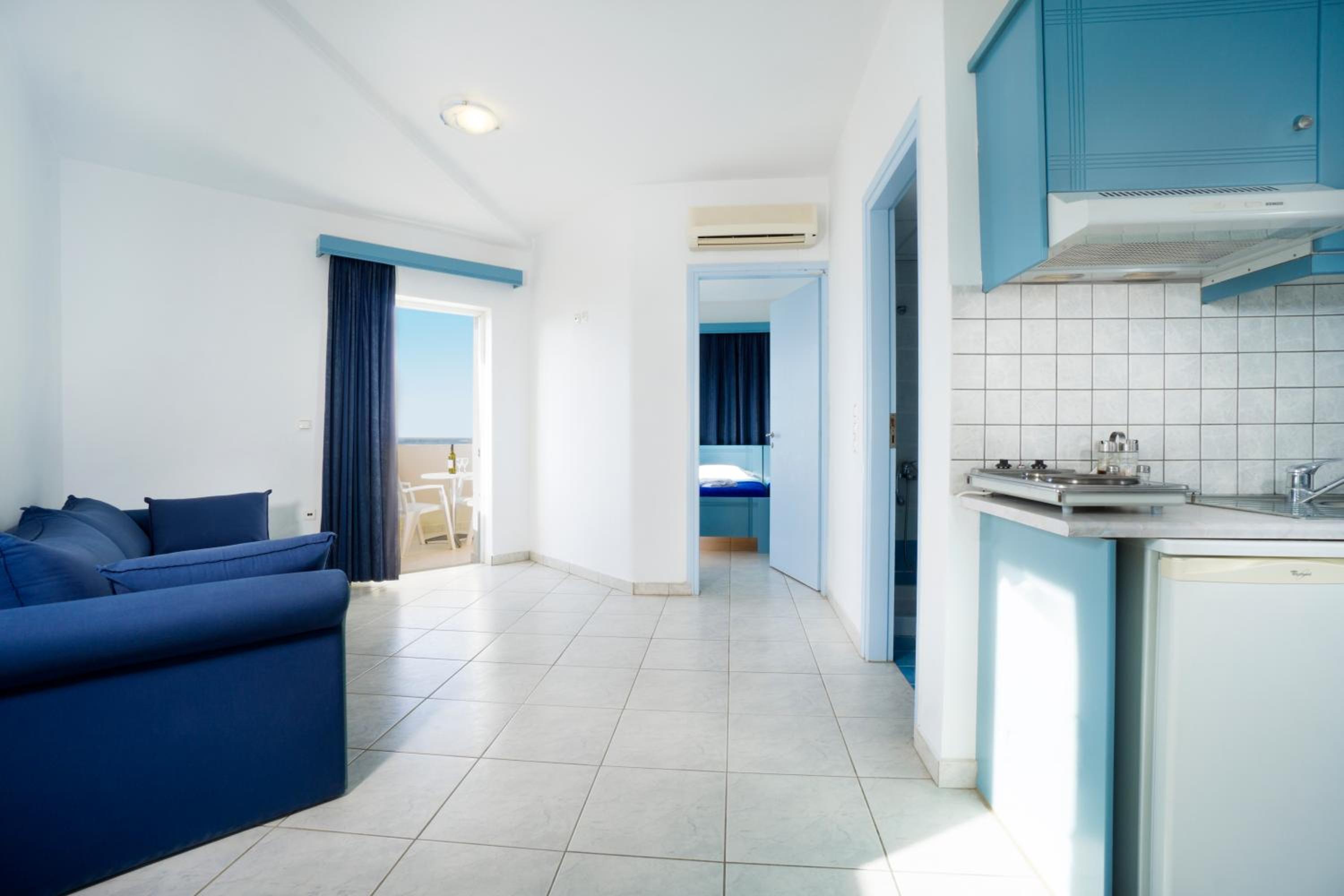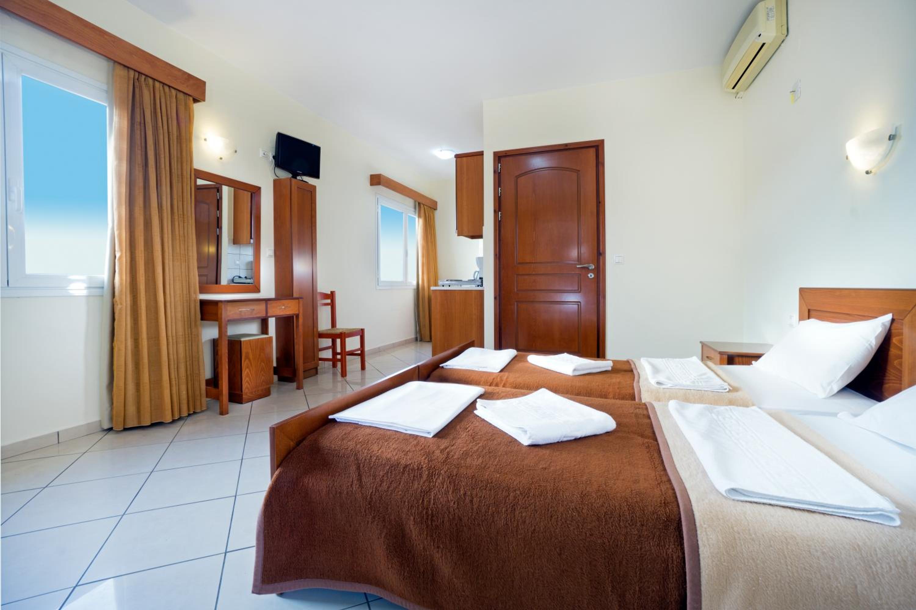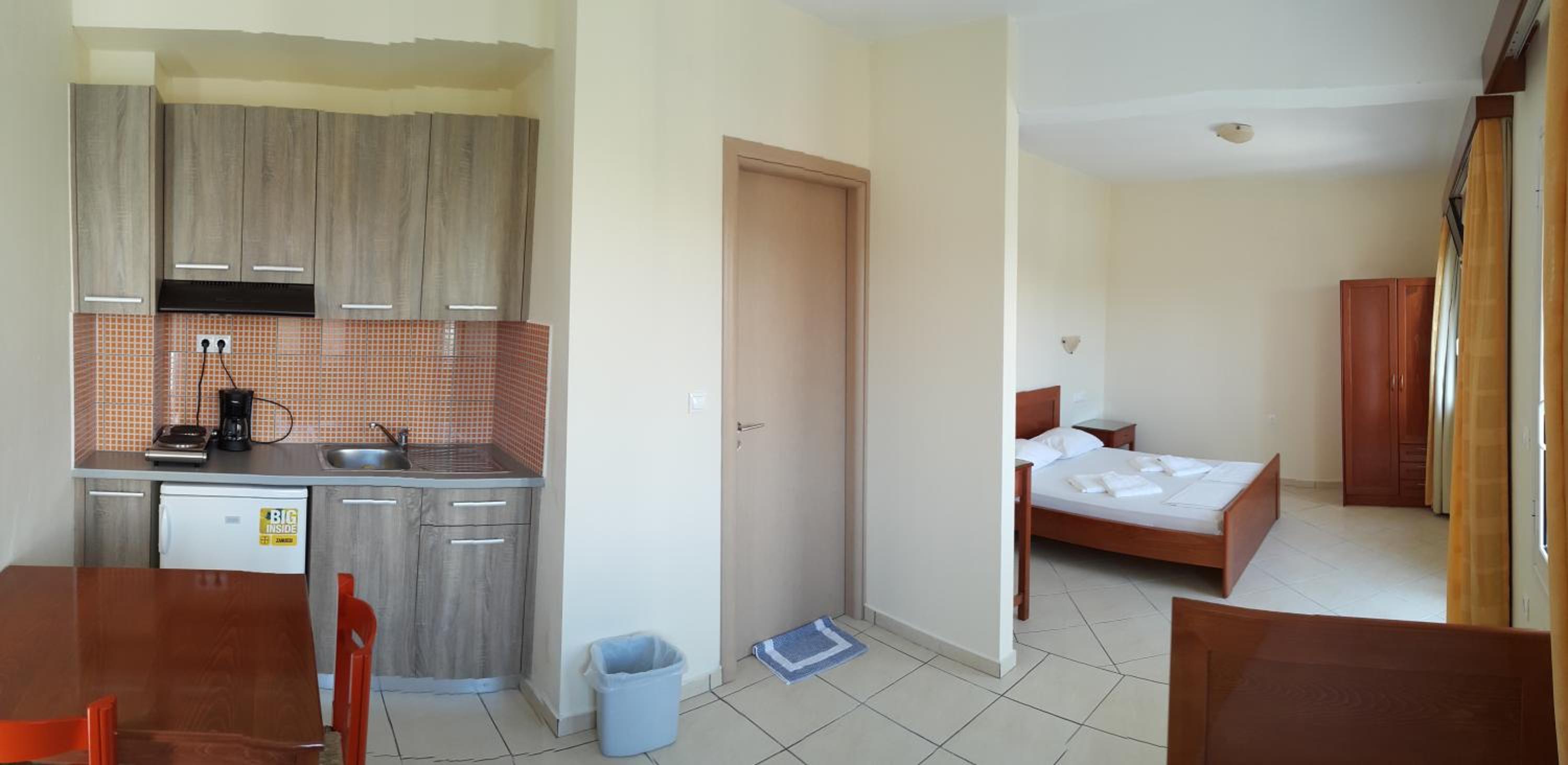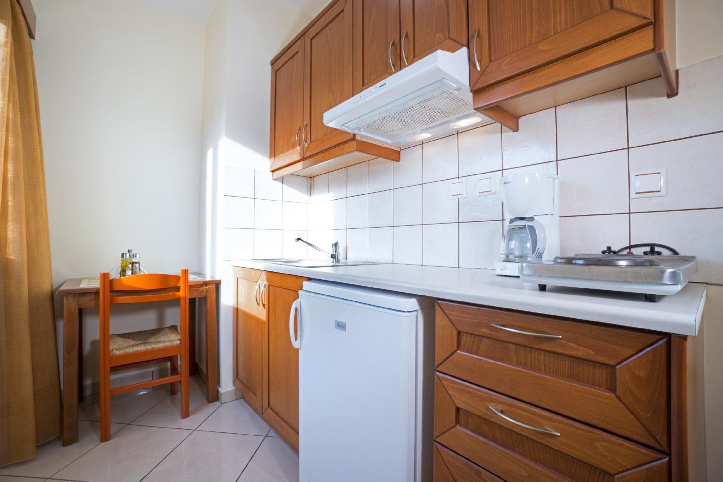 Indulge in our modern studios and apartments, all equipped with a kitchenette and balcony. Some units offer stunning views of the Cretan Sea for a truly memorable experience.