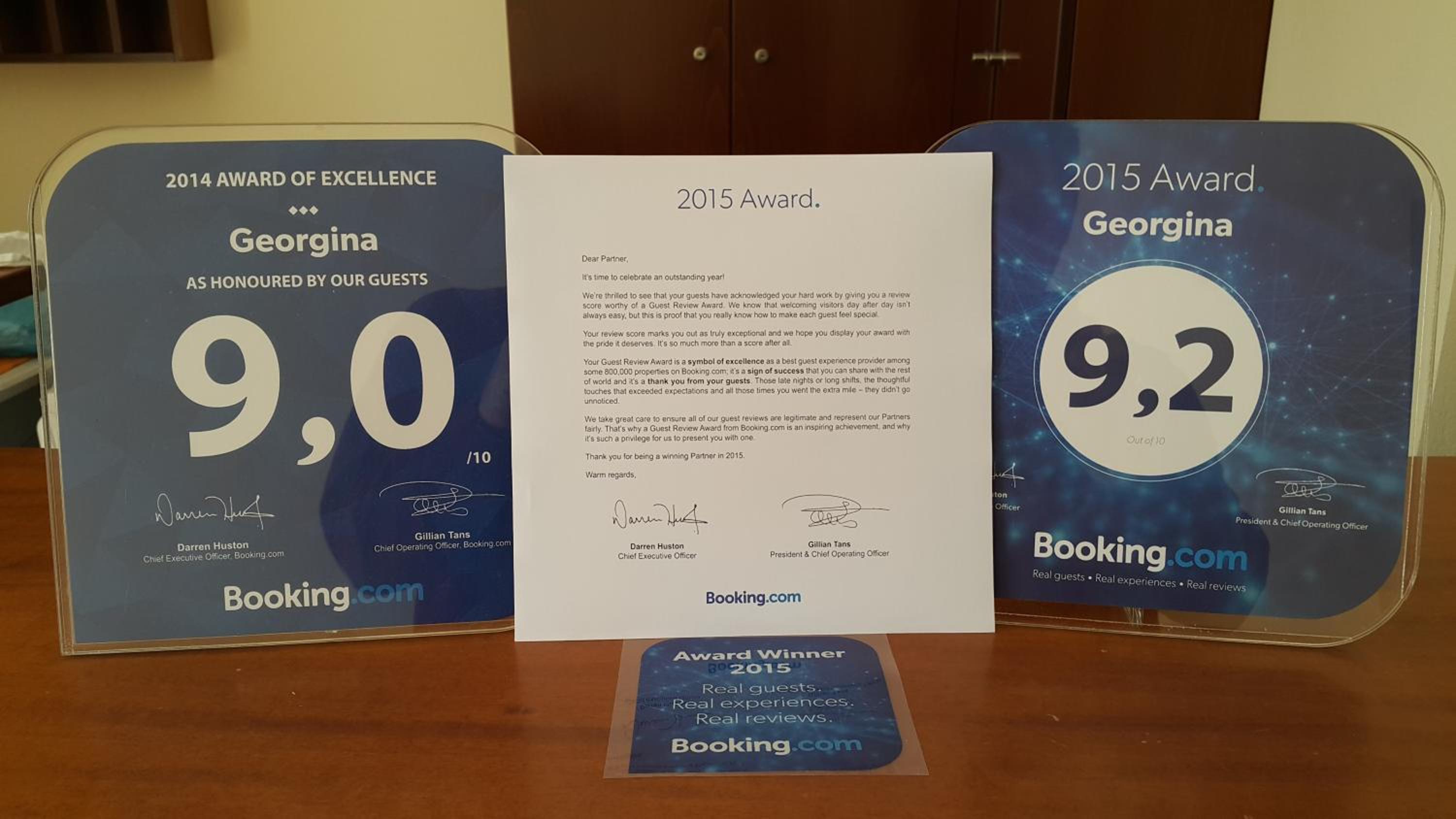 Die Hotelleiterin Georgina war außerst nett und freundlich. Sie ist immer da für ihre Gäste. Die ordentlichen Gäste können beim Check-out auf ein Geschenk von Georgina rechnen. Die Lage ist supper - 1. Linie, gerade am Strand.