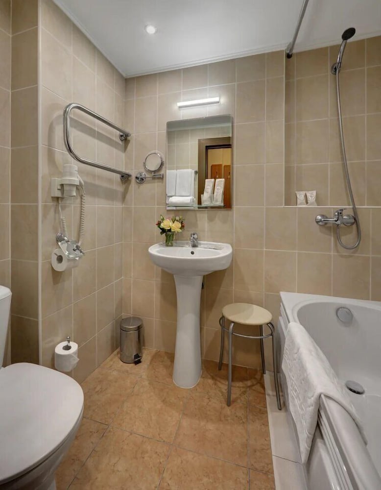 Номер простенький, ванная комната то же, но в принципе чисто. В номере стоял специфический неприятный запах, не знаю от чего, может от коврового покрытия. Приходилось все время окна открытыми держать. Шумно, так как окна выходили на шоссе, даже через закрытые окна слышимость от дороги. До метро не далеко, или в одну или в др сторону, рядом автобусная остановка. На пару дней сойдет, не более.