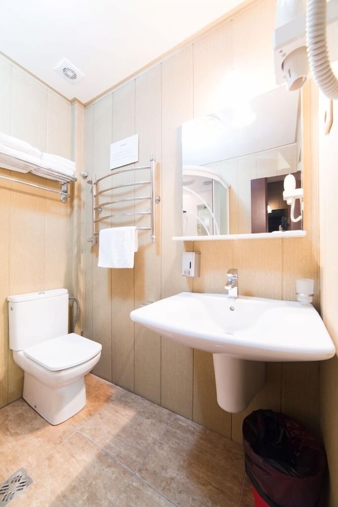 Если быть кратким-гостиница с обслуживанием как в советское время. Персонал явно не стремится тебе угодить, к своим обязанностям и к гостям отеля относятся весьма поверхностно. В описании номера был заявлен рабочий стол- на самом деле он отсутствовал и для меня это было проблемой. Шкаф-купе был без одной двери. Уборка была посредственная, в номере при заселении посреди коридора нас ожилал клок женских волос, шампуни положить забыли. Ранее заселение платно, даже в час дня просят доплату в 150 рублей (жалко им что-ли?). Питались только на завтраках-выбор небольшой, но есть можно. В кашу, выпечку и т.д. добавляют очень много сахара- диабетикам тут не наесться)) От аэропорт а вокзала отель находится близко- такси менее 200 рублей, на автобусе-остановка АЗС или "Известия". До общественного пляжа идти минут 5-7, через небольшой парк и под железной дорогой. Вокруг много столовых и кафе (довольно дорогие. Итог-жить можно, но за эти деньги можно поселиться и в более современном отеле, с внимательным персоналом и лучшим сервисом.