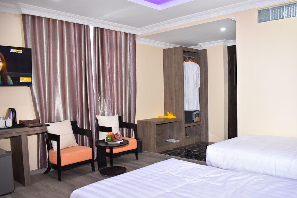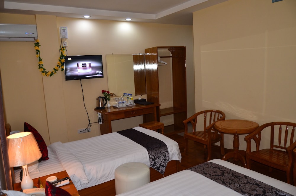 Enjoy Stunning Views from the Terrace and take advantage of amenities like complimentary wireless internet and a shared TV area. Savor Delicious Meals at the On-Site Restaurant or opt for convenient room service. Wake up to a complimentary buffet breakfast and explore the city with ease - thanks to limo service, a computer station, and other perks. Relax in Comfortable Rooms with Modern Amenities such as minibars, LED TVs, and free Wi-Fi. Immerse yourself in the vibrant culture of Mandalay, with key attractions within walking distance. Book your stay at Mingalar Hotel for a truly memorable experience.