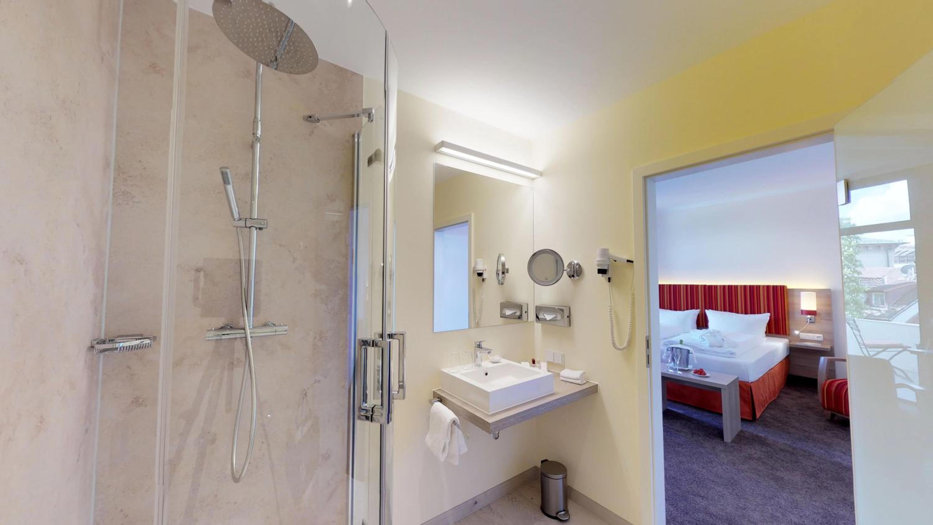 Schönes Hotel in top-zentraler Lage mit sehr freundlichem Personal. Geräumiges Zimmer, schöne Auswahl am Frühstücksbuffet. Schöner, kleiner Wellnessbereich mit Sauna und Dampfbad.