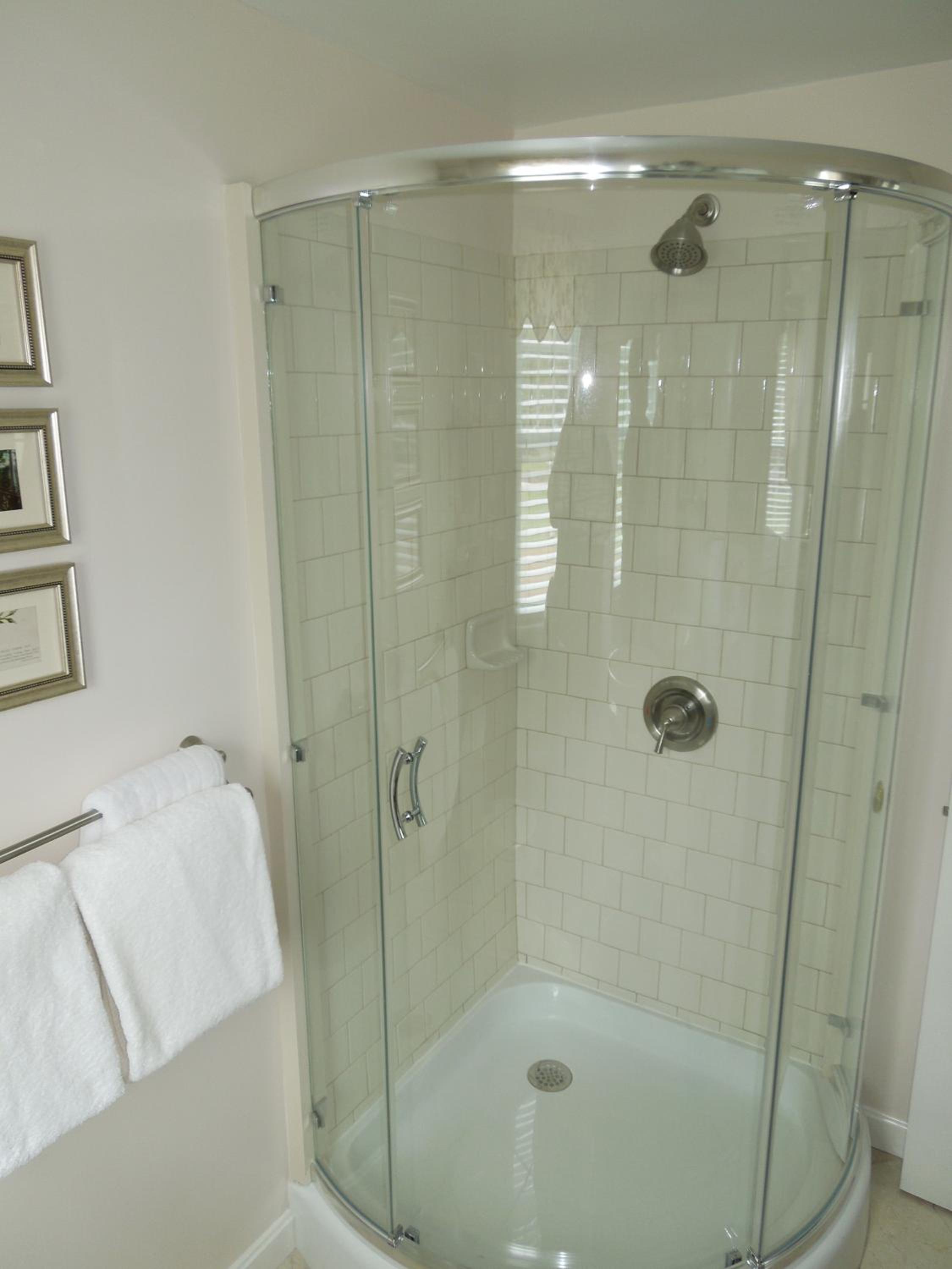 It was a house, a B & B. There was a shared bathroom. We works have known. The shower stall for creeked, like the floor under it had rotted from water damage. The door to our from stuck in the door frame and was hard to open and close.