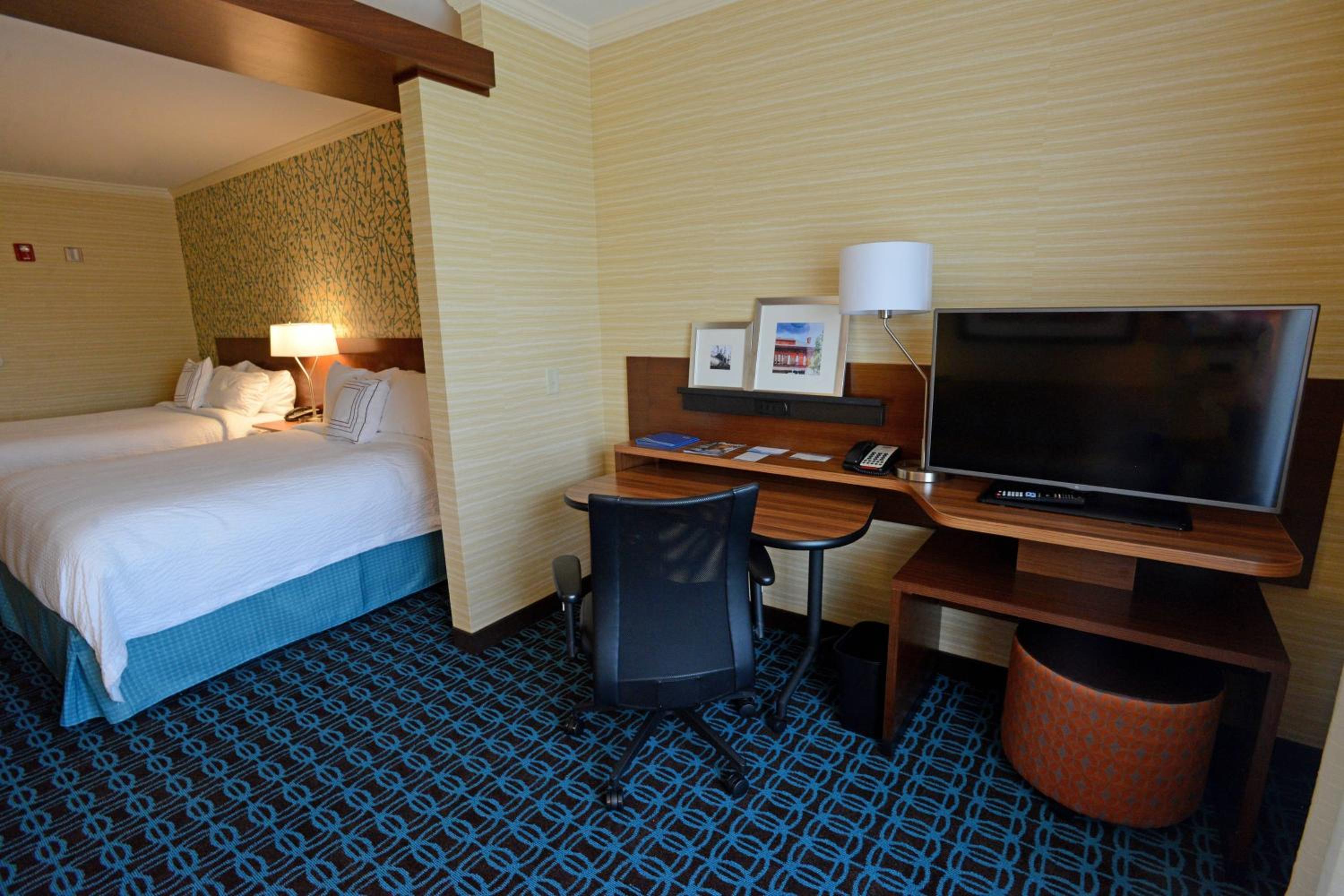 Luxurious Amenities: Enjoy the indoor pool, fitness centre, and free daily breakfast during your stay at Fairfield Inn & Suites by Marriott Bowling Green. Each room is equipped with a flat-screen TV, microwave, and refrigerator for your comfort.