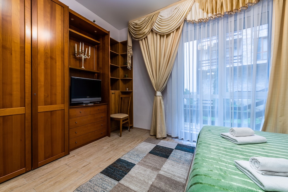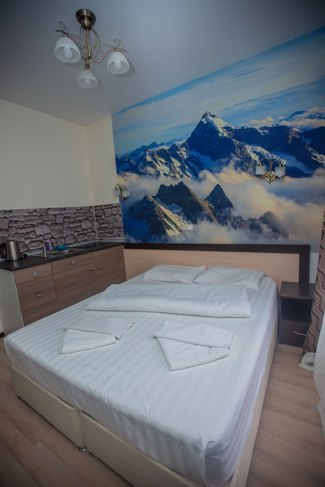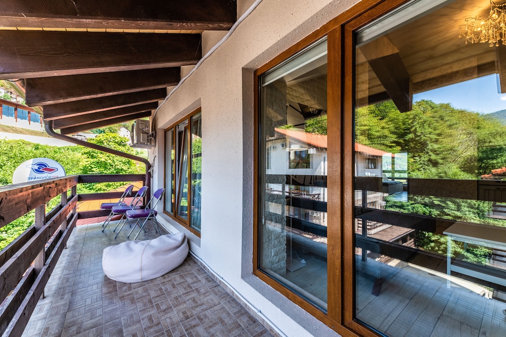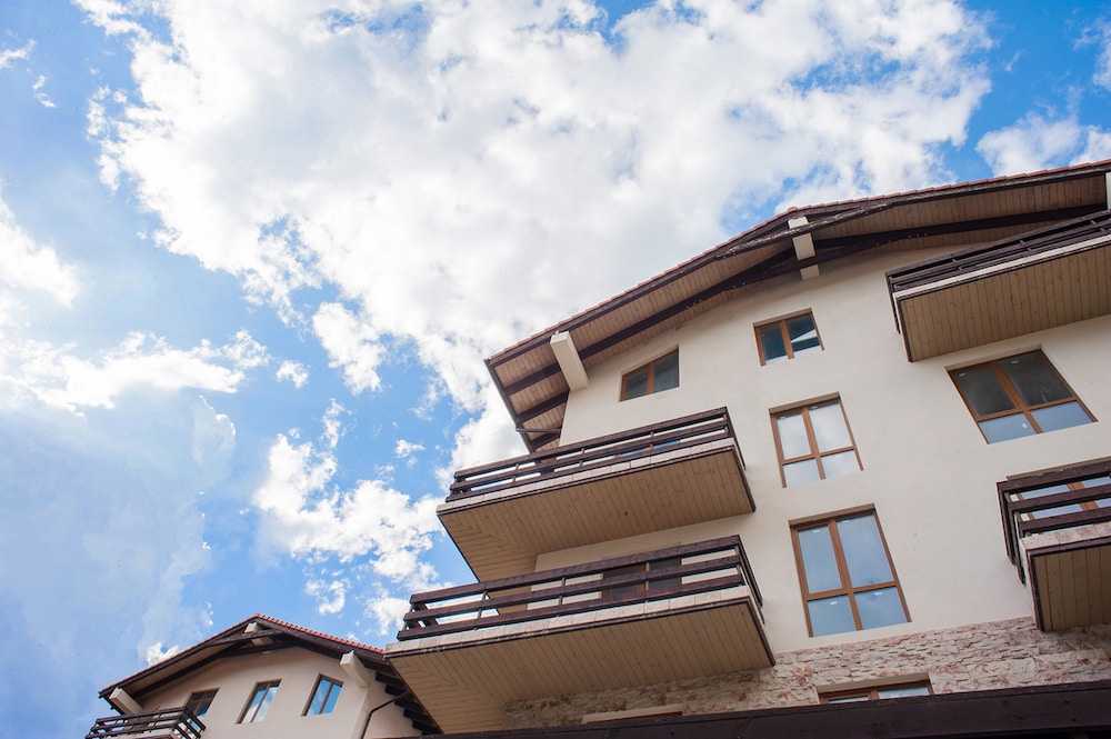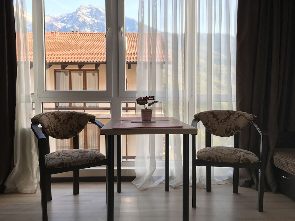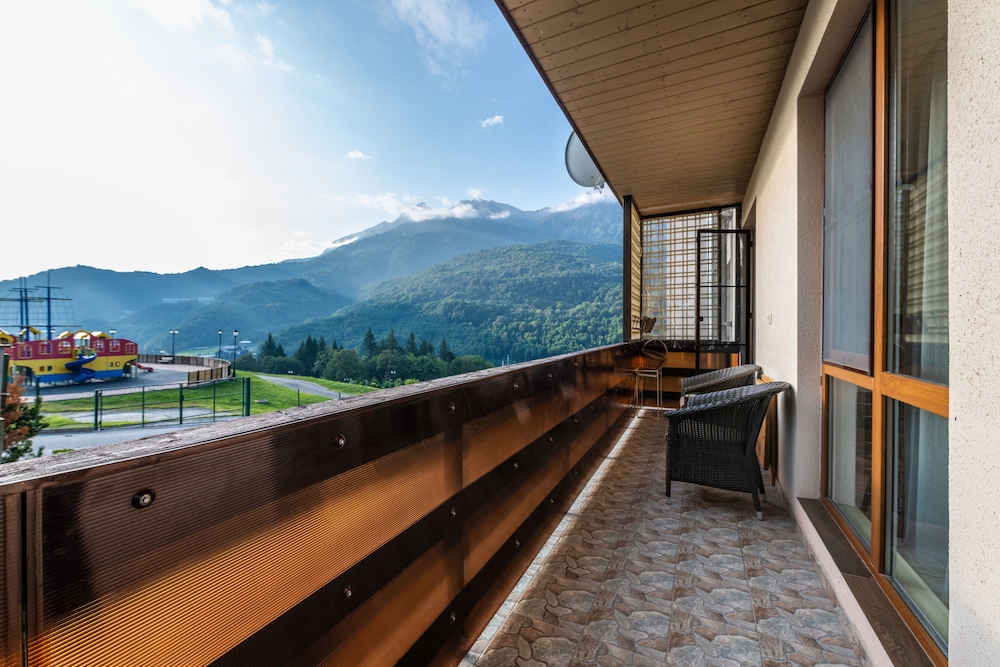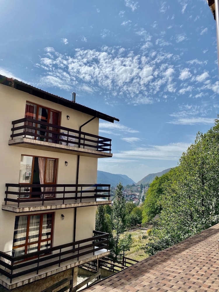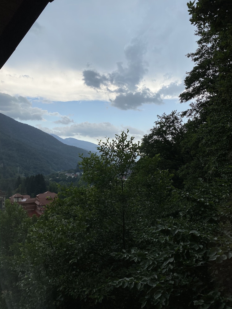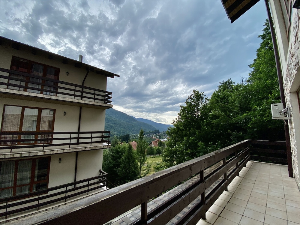 Очень понравился отель. Низкая цена без ущерба качеству. Все новое, чистое. В номере довольно удобно все обустроено. Много спутниковых каналов. Доброжелательный, отзывчивый персонал. В некоторых номерах большие балконы, и из номеров, например, 1.2, 1.3, 1.7, 1.8 красивый вид. Удобные постели. Внизу в холле бойлер и кулер, wi-fi (в номерах нет). Единственный минус - к отелю подниматься в довольно крутую горку, налегке еще ничего, но с сумками или горнолыжным оборудованием весьма тяжело.