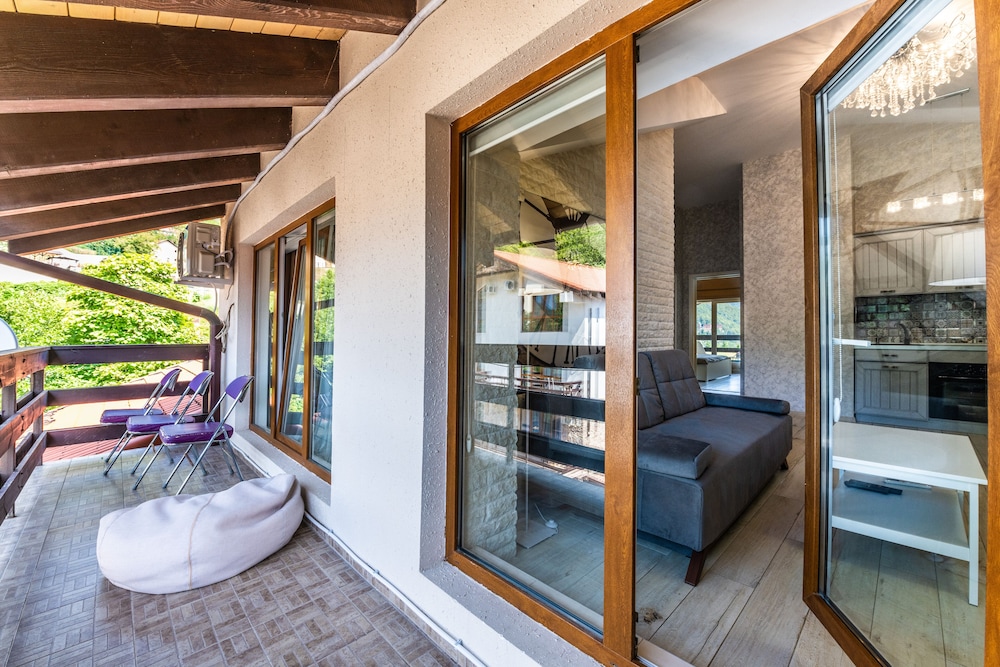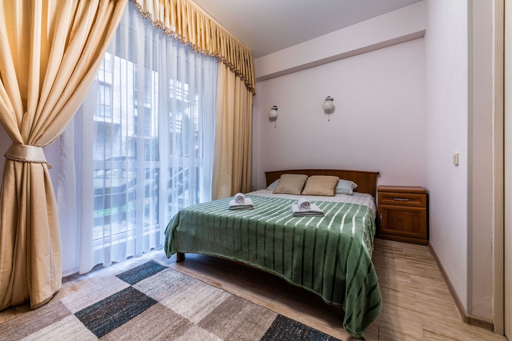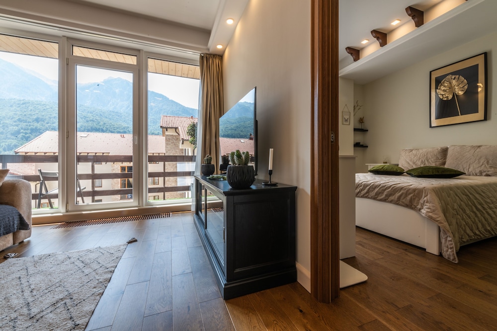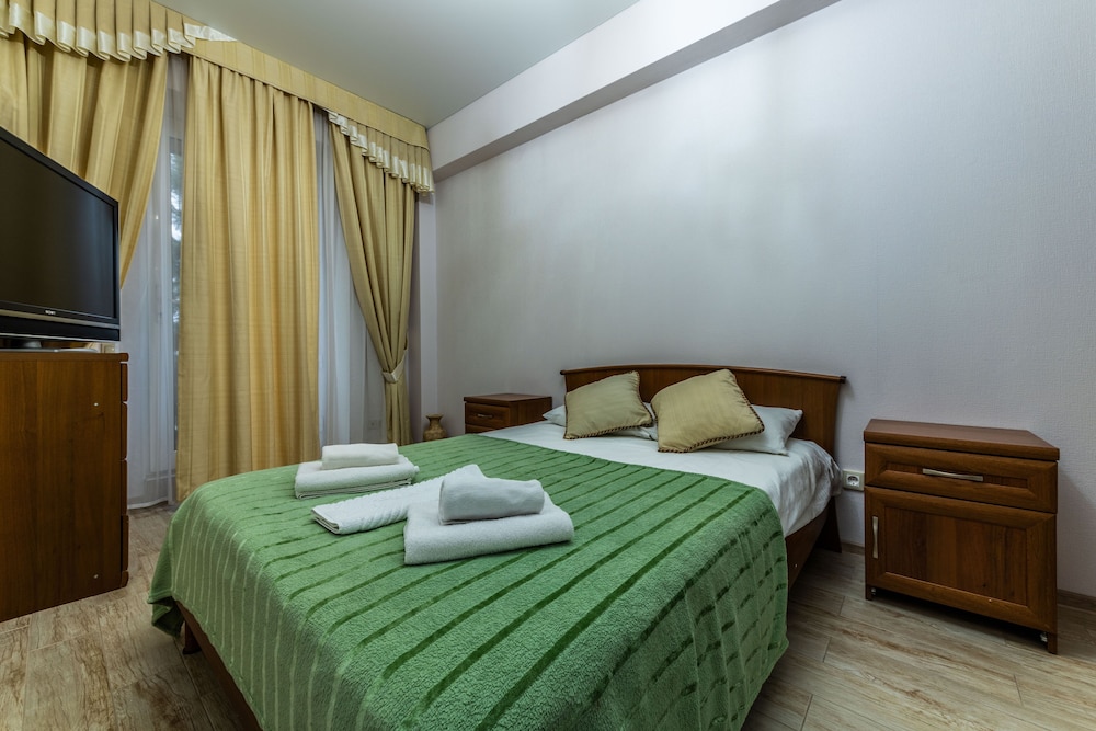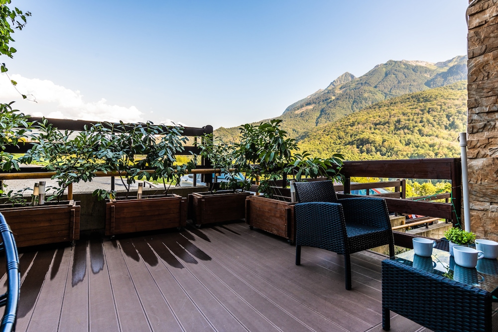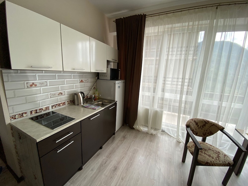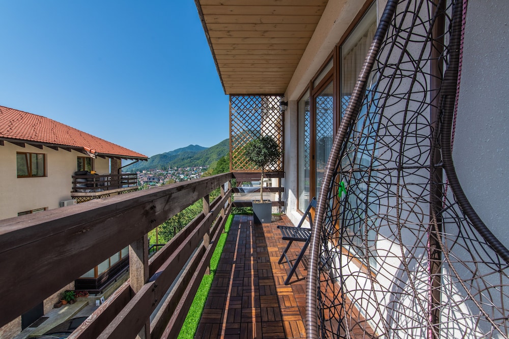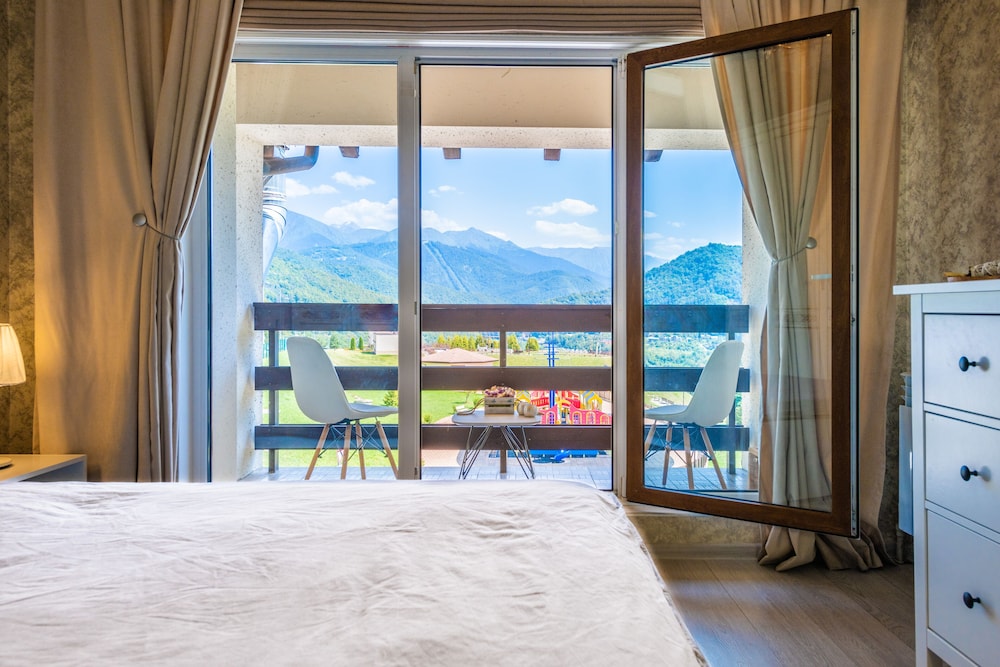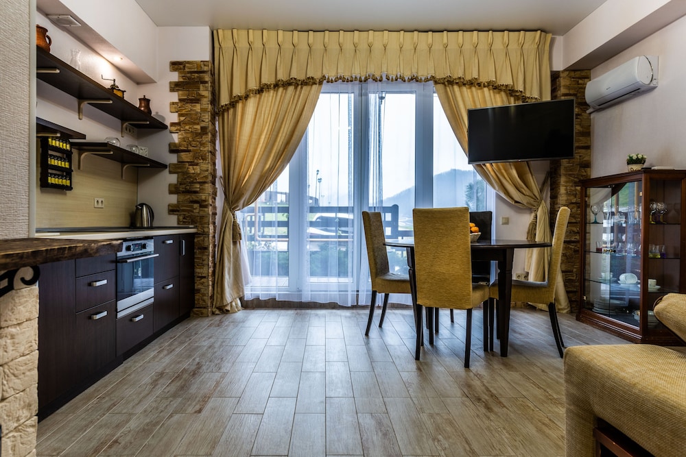 Очень понравился отель. Низкая цена без ущерба качеству. Все новое, чистое. В номере довольно удобно все обустроено. Много спутниковых каналов. Доброжелательный, отзывчивый персонал. В некоторых номерах большие балконы, и из номеров, например, 1.2, 1.3, 1.7, 1.8 красивый вид. Удобные постели. Внизу в холле бойлер и кулер, wi-fi (в номерах нет). Единственный минус - к отелю подниматься в довольно крутую горку, налегке еще ничего, но с сумками или горнолыжным оборудованием весьма тяжело.