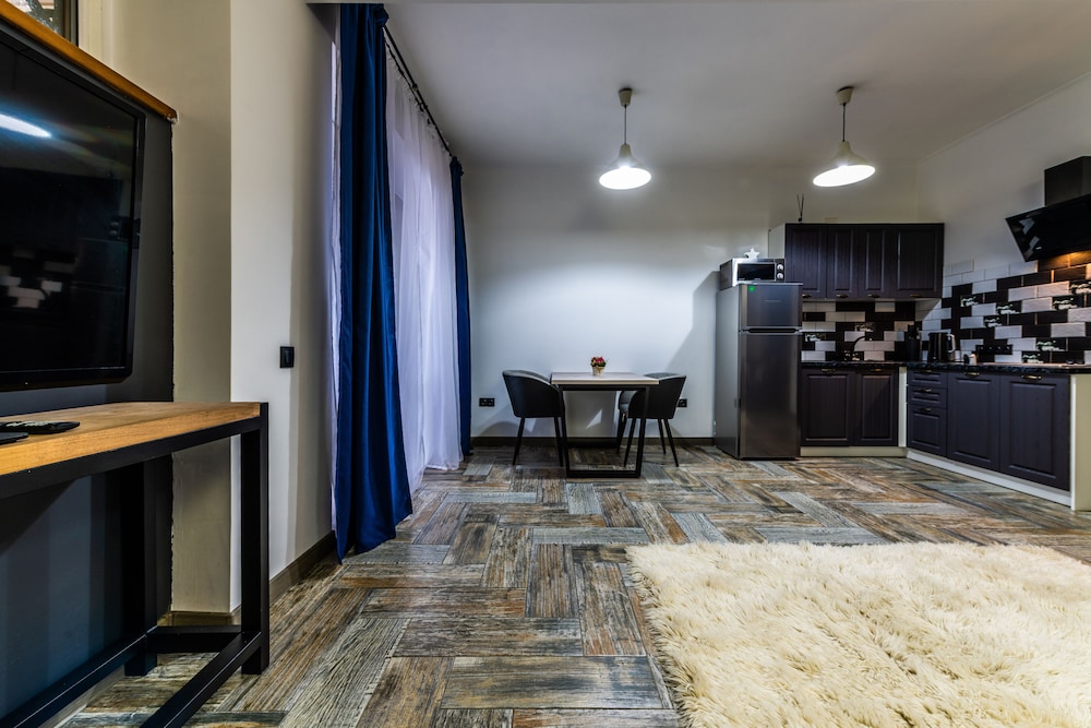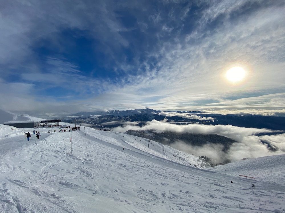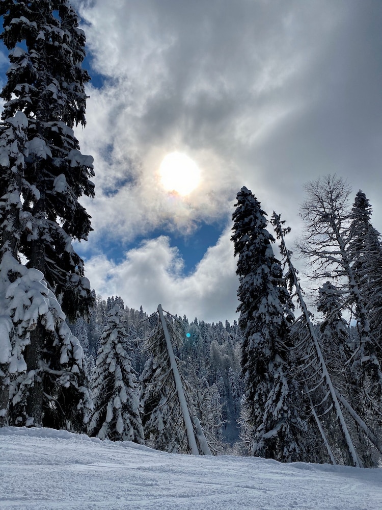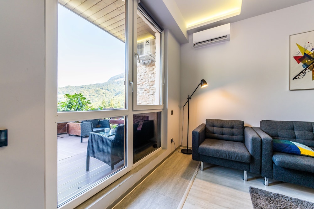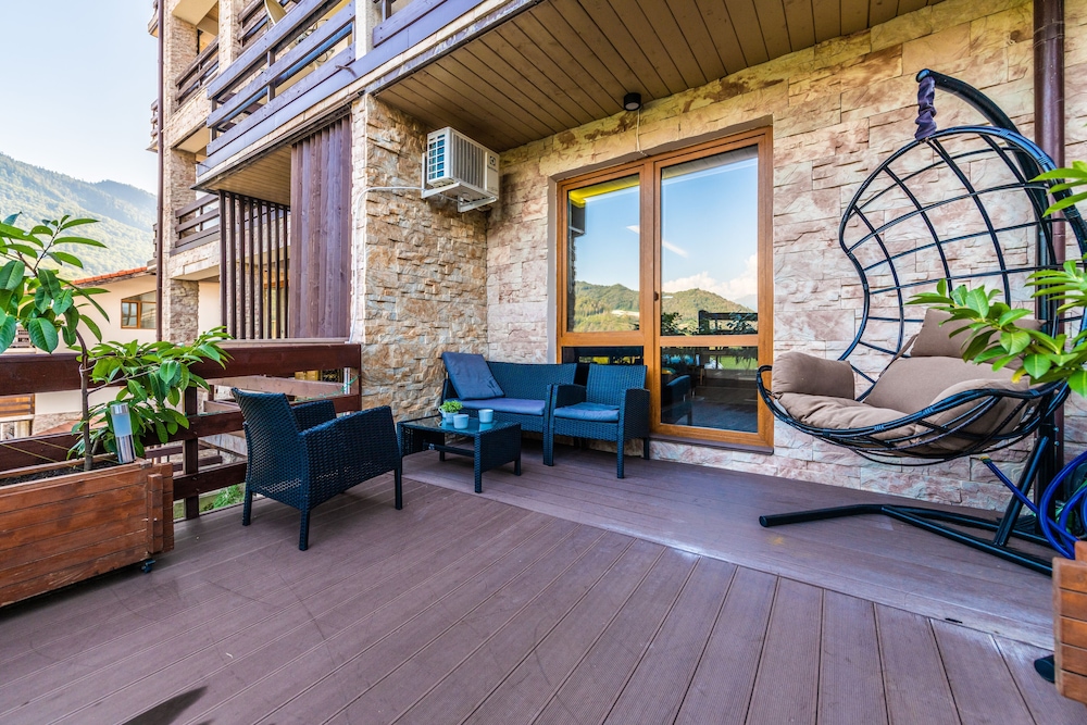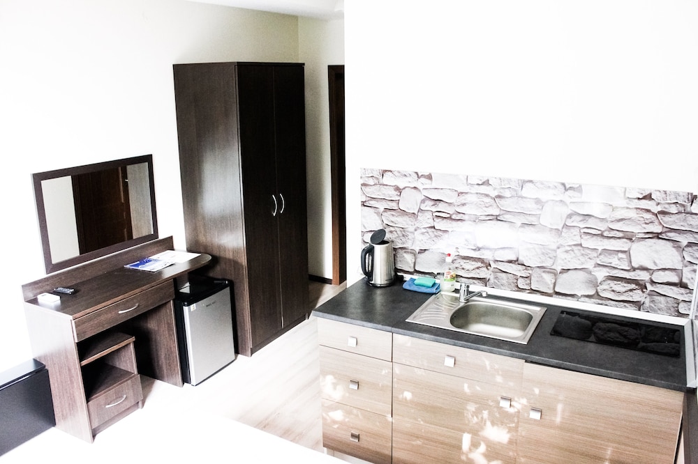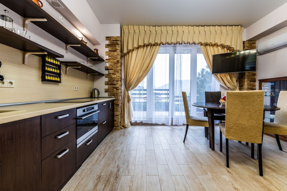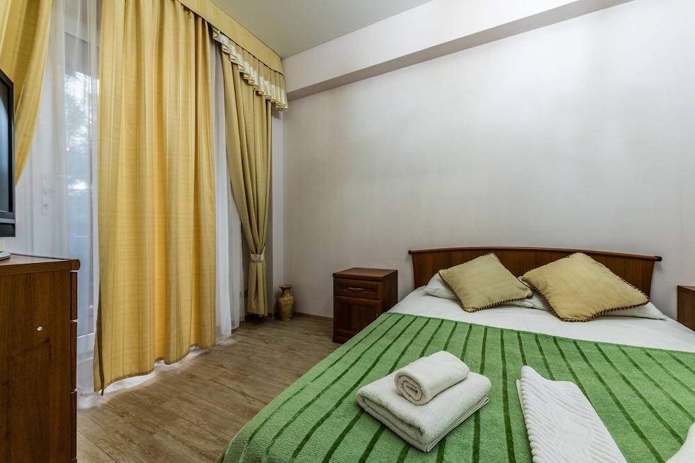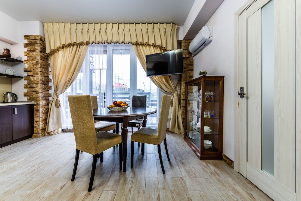 Очень понравился отель. Низкая цена без ущерба качеству. Все новое, чистое. В номере довольно удобно все обустроено. Много спутниковых каналов. Доброжелательный, отзывчивый персонал. В некоторых номерах большие балконы, и из номеров, например, 1.2, 1.3, 1.7, 1.8 красивый вид. Удобные постели. Внизу в холле бойлер и кулер, wi-fi (в номерах нет). Единственный минус - к отелю подниматься в довольно крутую горку, налегке еще ничего, но с сумками или горнолыжным оборудованием весьма тяжело.