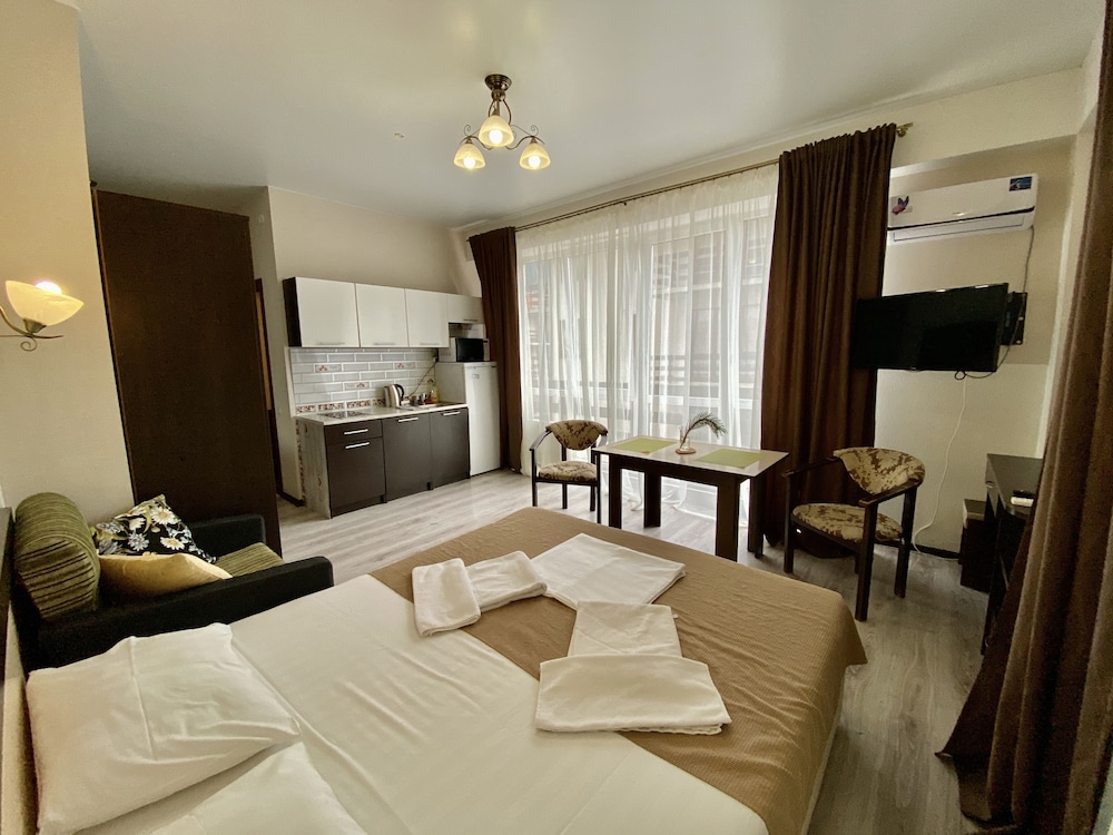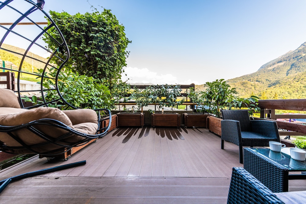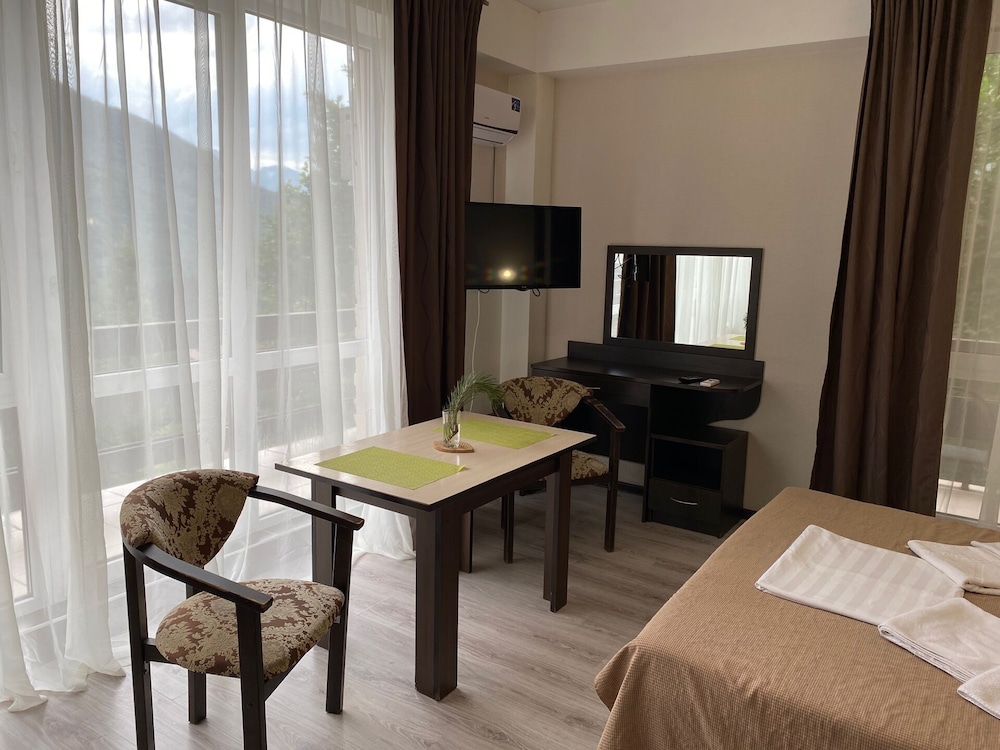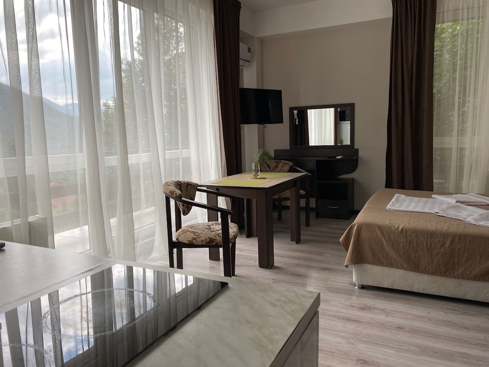 Отель хороший, уютный номер с видом на горы. Единственное неудобство - рядом с отелем была стройка и весь прекрасный вид портился. А в целом можно легко добраться до моря, в 3 мин от отеля есть остановка. Рядом магазины и кафе. И виды шикарные