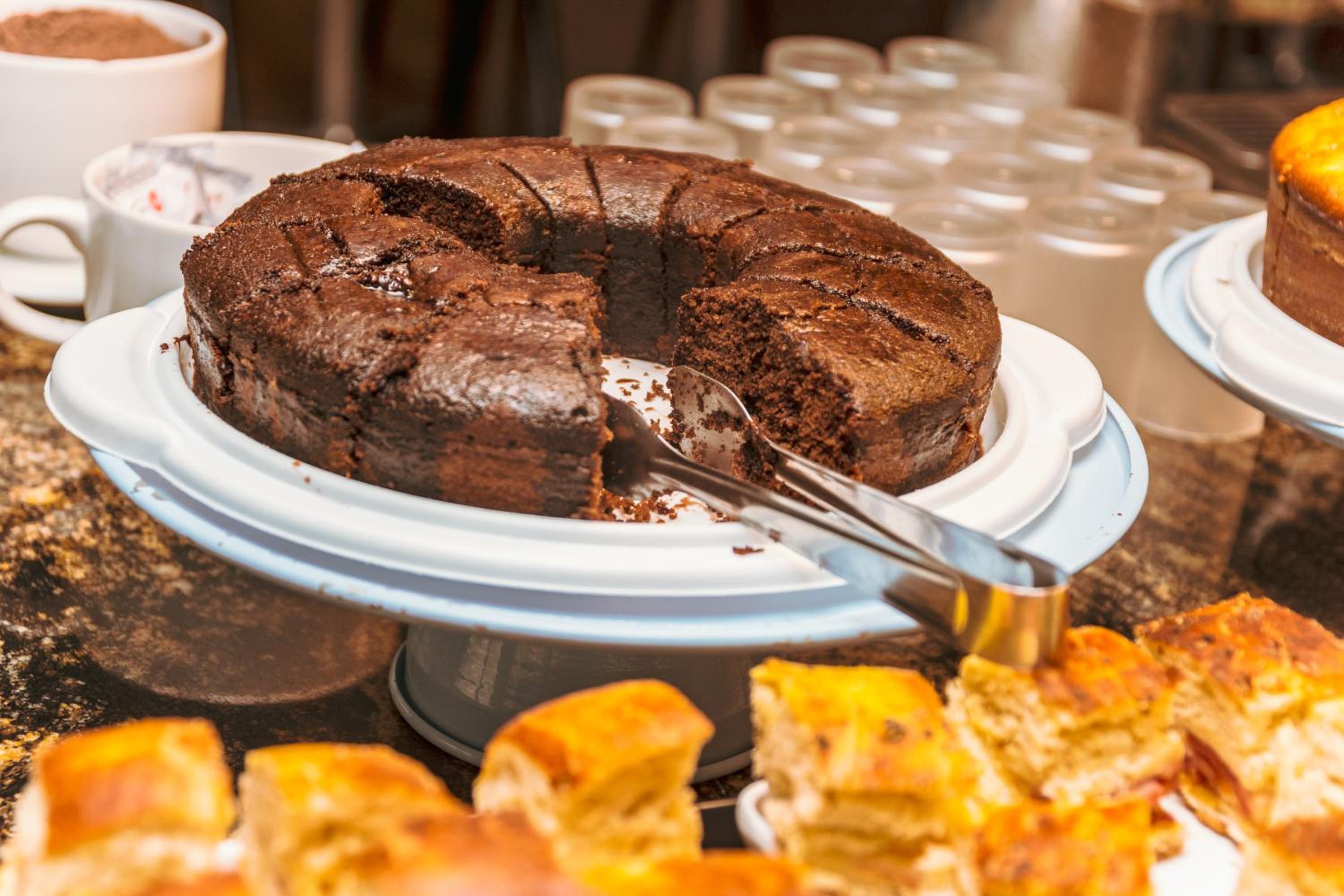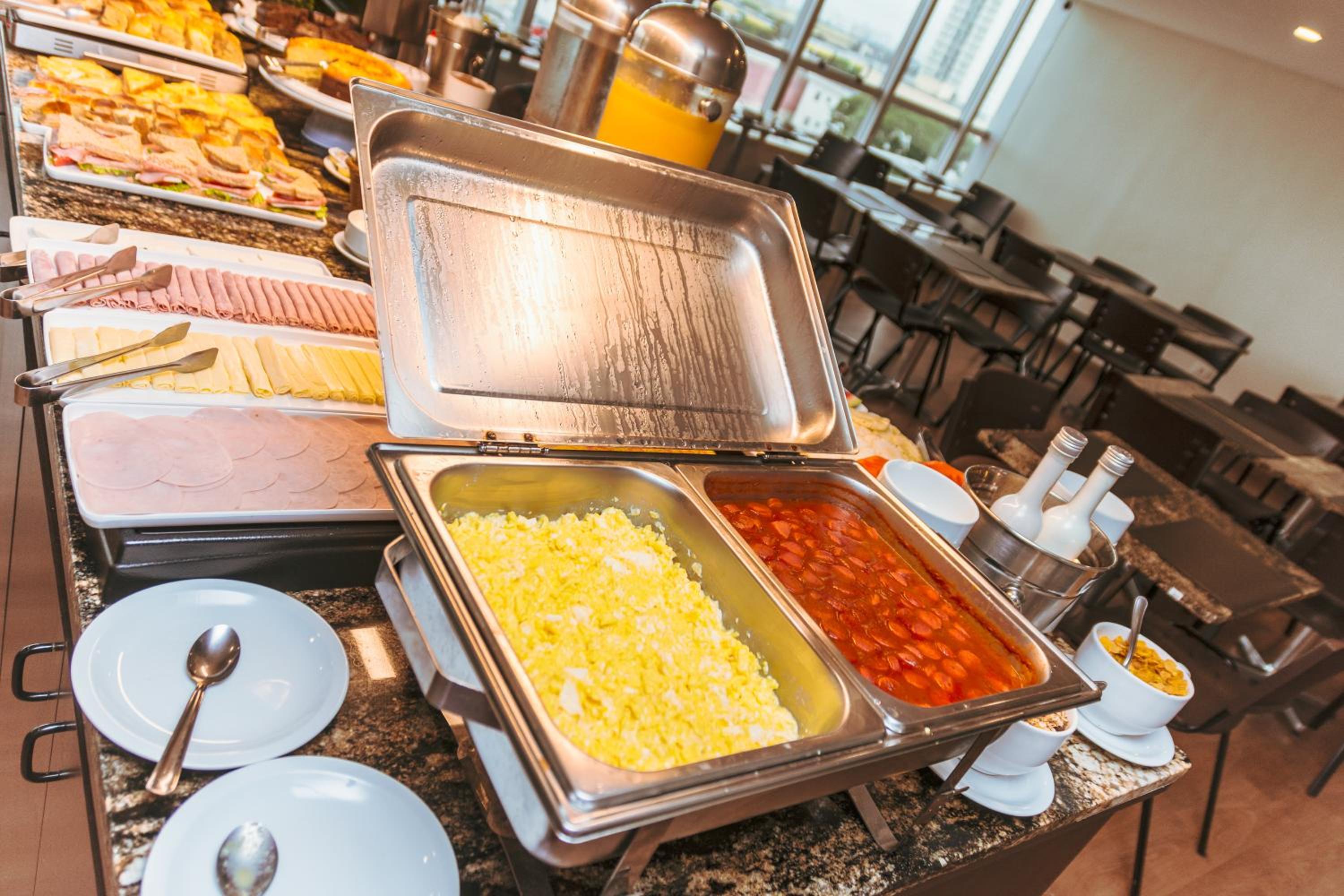 O atendimento dos funcionários em geral foi excelente, o café da manhã apesar de simples tem variedades de bolos e outros carboidratos, a ducha é ótima e o espaço do quarto também.