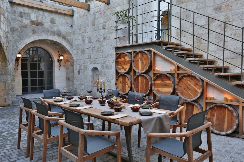We arrived very late but staff were very helpfull & guided us to our well-appointed cave room which we loved. The hotel is a beautiful stone building spread over several levels on the hillside with a pool and carious outdoor areas. Breakfast was good with the ability to order eggs or omlete to taste