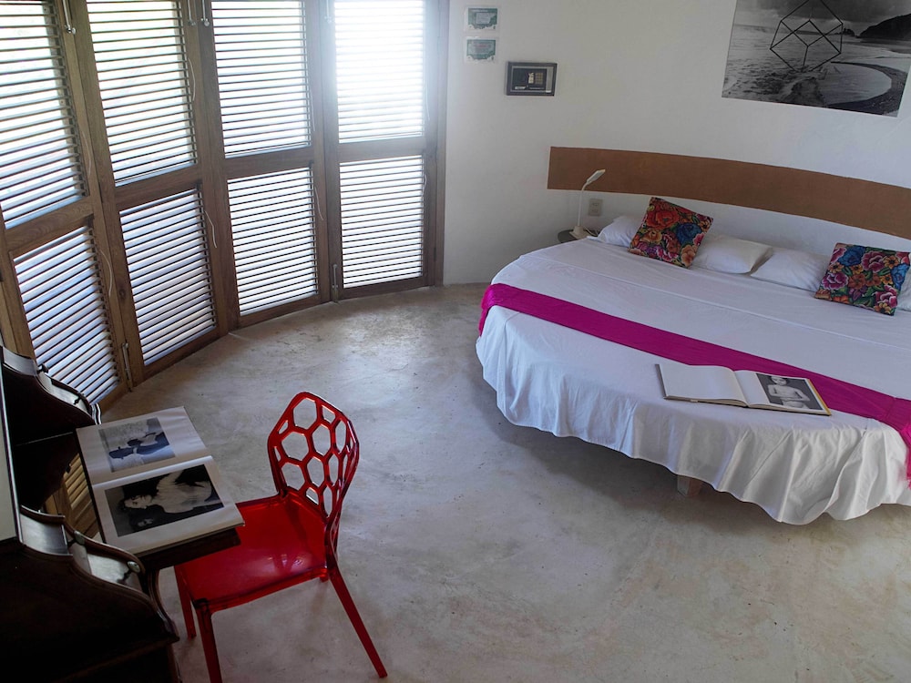 We stayed in the circular cabin and found it to be a little gem! Exactly what we were looking for; quiet, simple and beautiful. The property is full of interesting art and has an incredible view of the ocean. You should know there are about 150 steps up to get to the cabins and about a 10 minute walk to the main streets of Mazunte for shops and restaurants, but it’s well worth it. We would definitely stay here again.