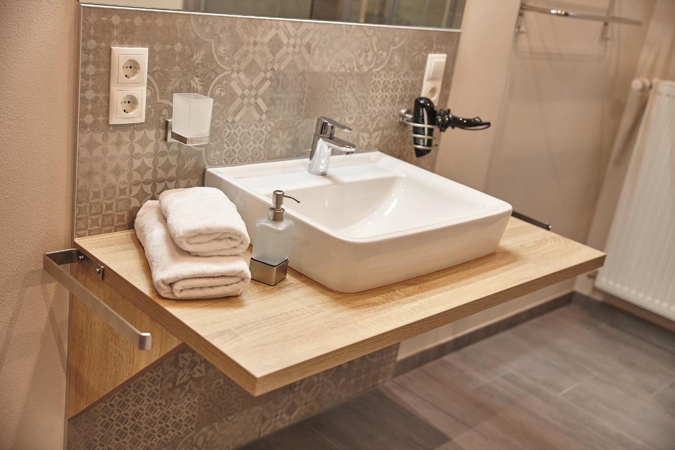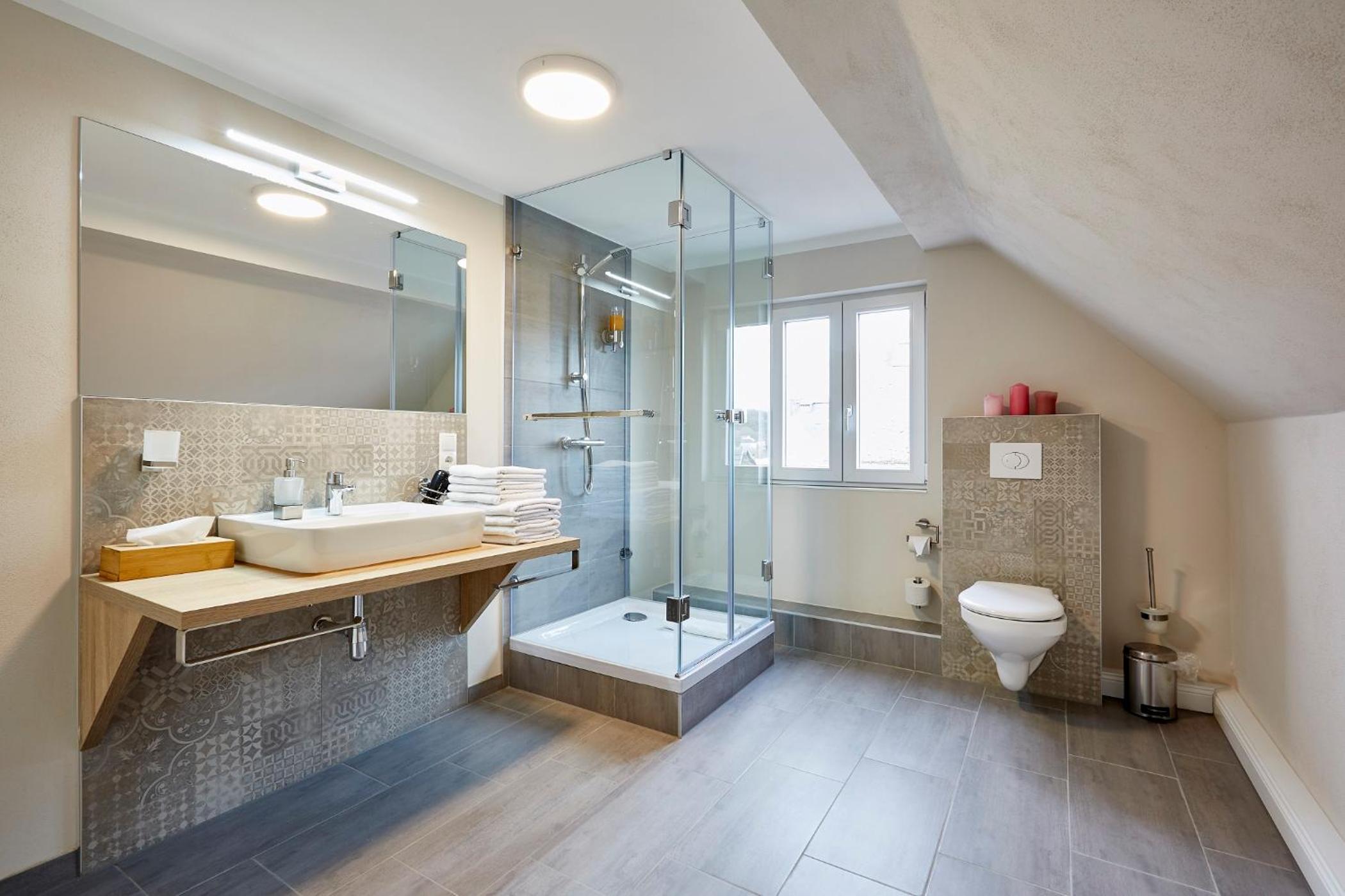 Experience comfort at its best in our rooms equipped with cable TV, a cozy seating area, and modern bathrooms. Stay connected with complimentary Wi-Fi during your stay at Zum Landsberger Hof.