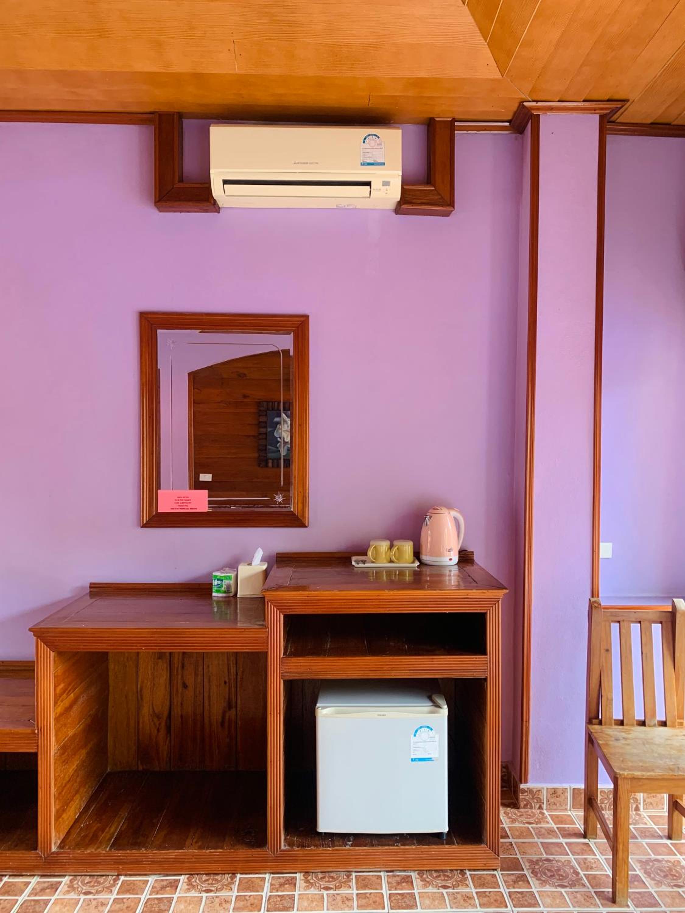 The water from the shower smelt quite bad although I think that may be a problem throughout the whole island as it was the same in another hotel. The location wasn’t great unless you are willing to ride a moped, but too far to walk to main areas like sairee beach.