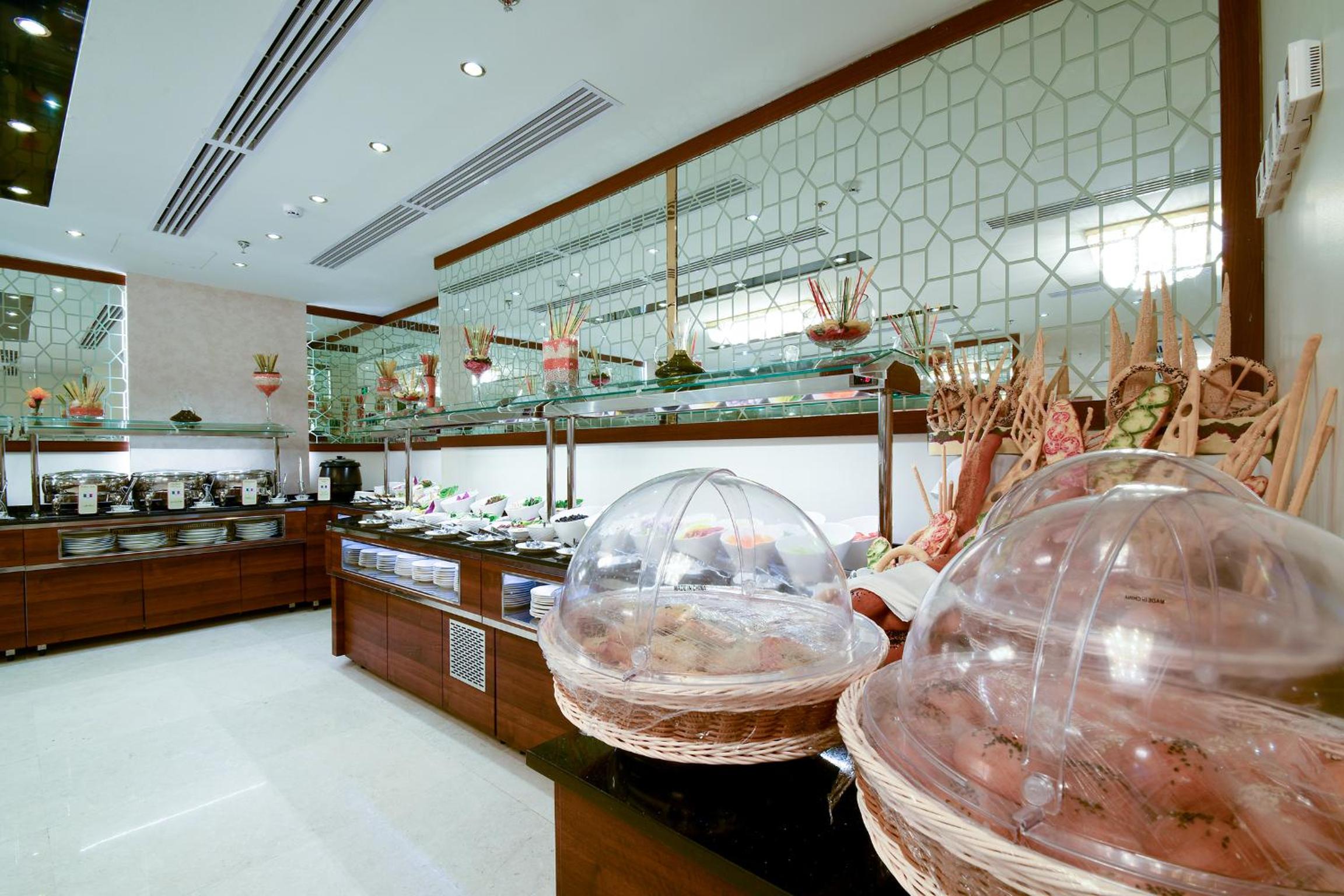 Indulge in a gastronomic journey at our three restaurants offering panoramic views of Haram. Savor a variety of Arabian, Asian, and International cuisines or opt for the convenience of 24-hour room service. Treat yourself to delectable pastries and beverages at the Golden Coffee Shop.
