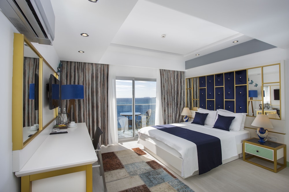 Deniz manzaralı odasında kaldık. Keyifli ve konforluydu. Merkeze yakınlığı ve kendi plajının olması en büyük avantajlarındandı.