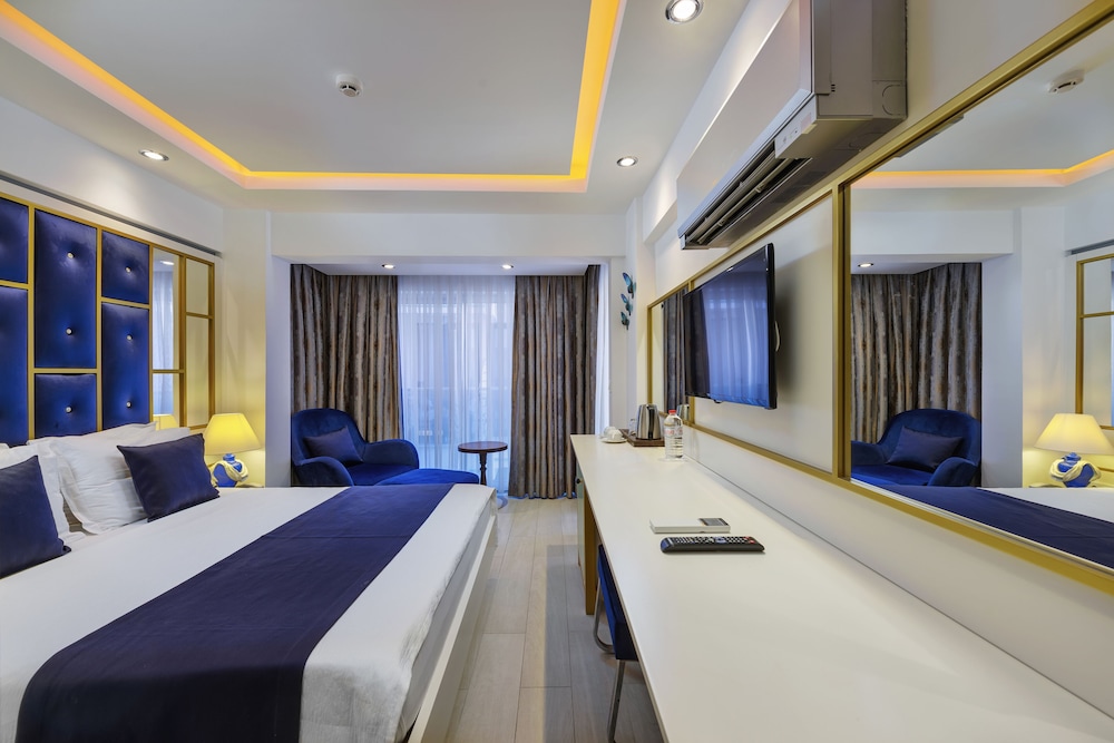 Yatak cok pisti, yastik kilifi dahi gecirilmemis sapsari bi yastik ve yatakta kil vardi. Bide ustune lutfeder gibi yardimci olmaya calisalim diyerek guc bela oda degistirdik. Kahvaltida kuflenmis peynirler vardi. Otel hakkinda soyleyebilecegim tek iyi sey beach kismi. Sezlonglar konforlu deniz guzel ama yeme icme asiri pahali oldugu gibi lezzet olarakta sifir.