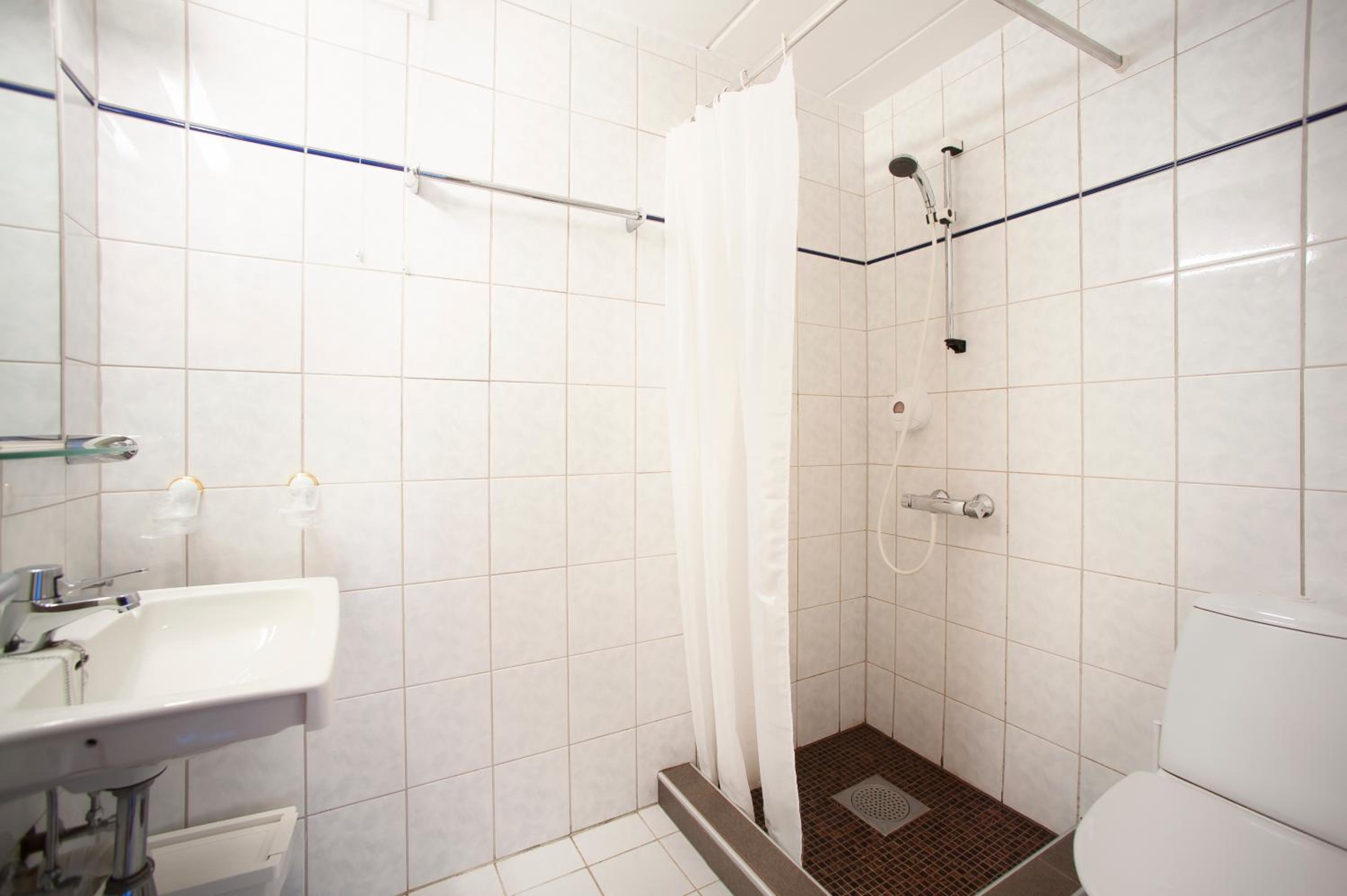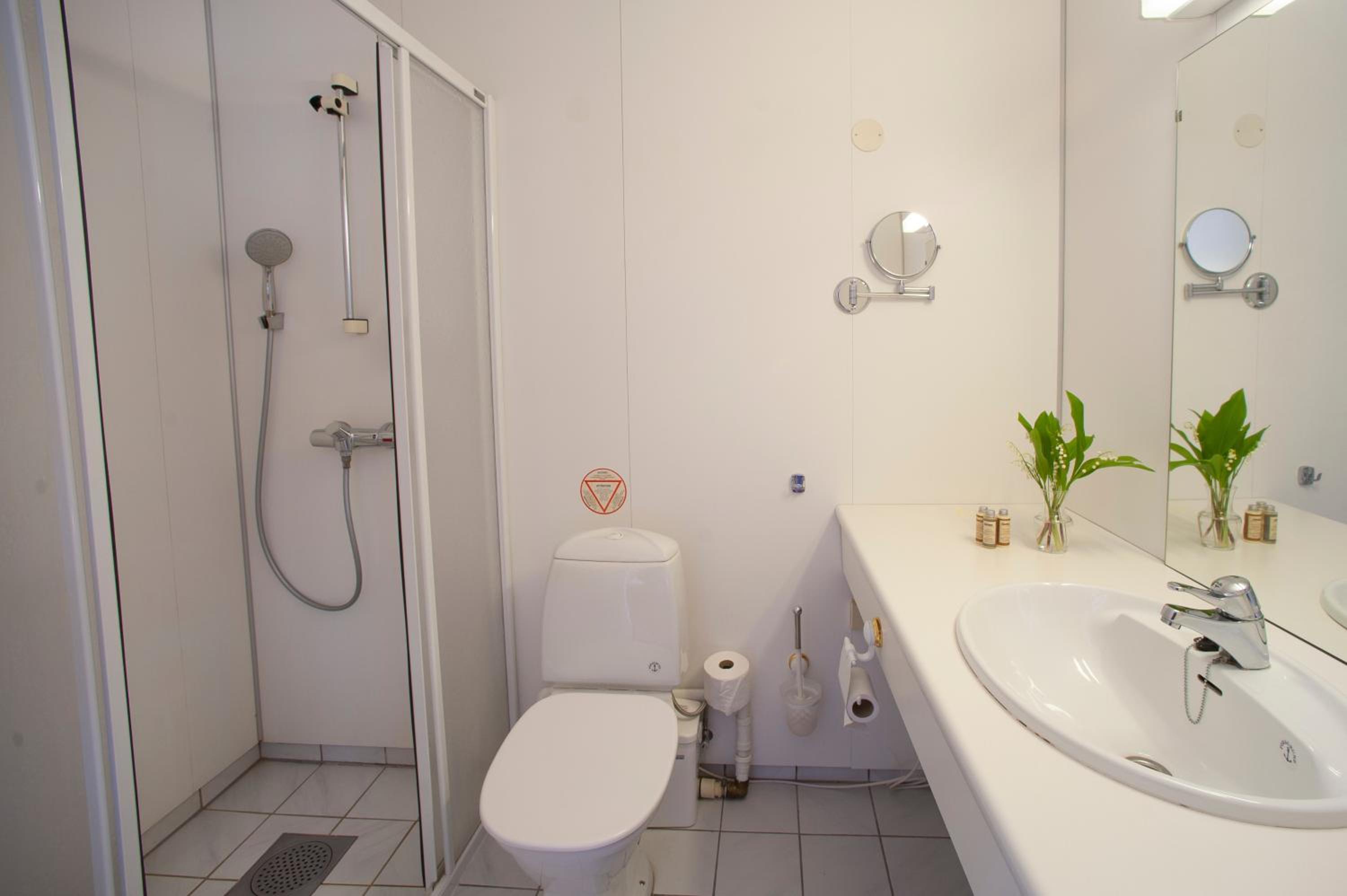 Jeg likt ikke baderommet. Toalettet var ikke festet, og vi måtte sitte med føttene i dusjen når vi brukte det.