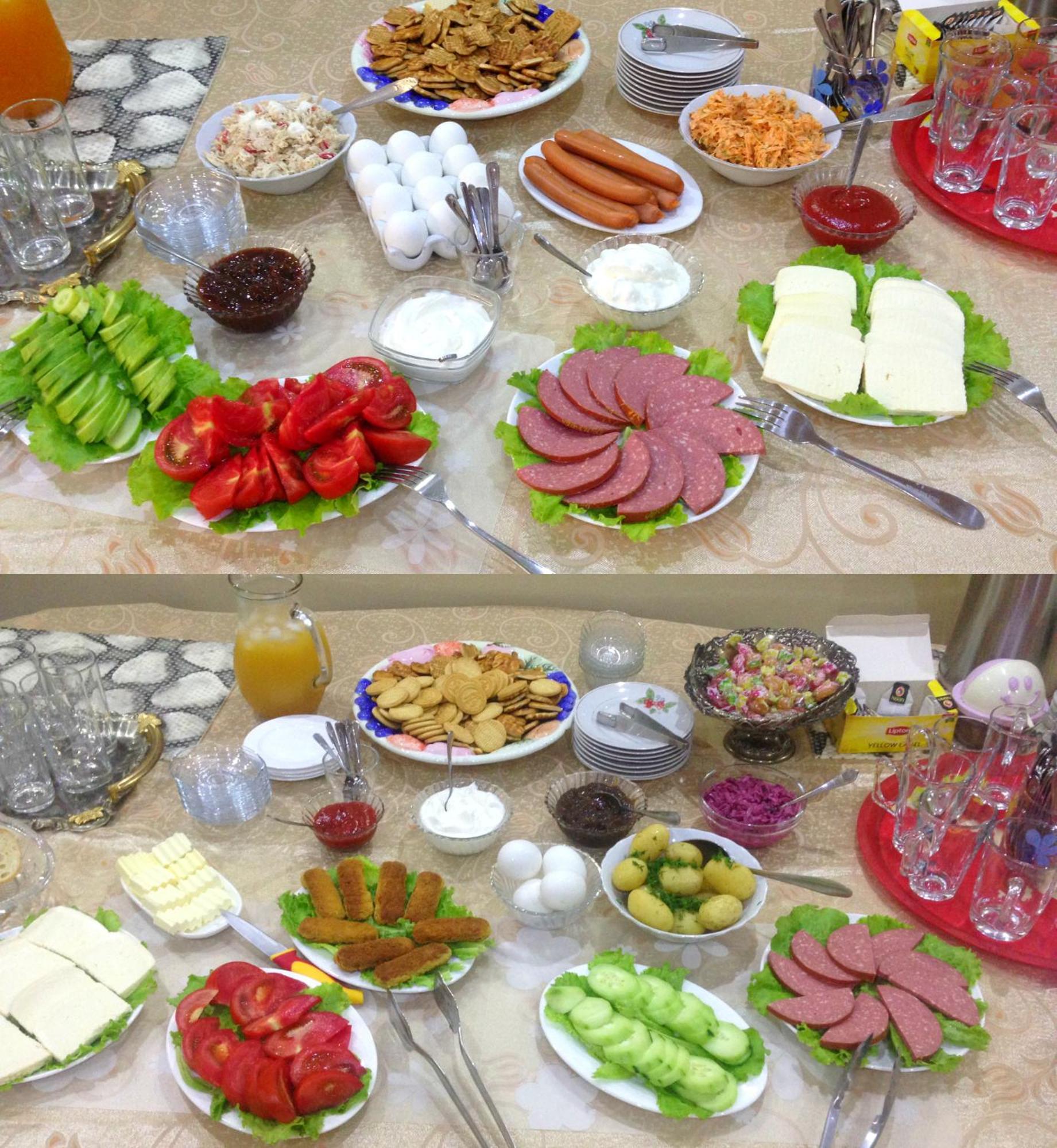 There were only shampoos, no toothpaste, toothbrushes, slippers. There weren't many options for breakfast.