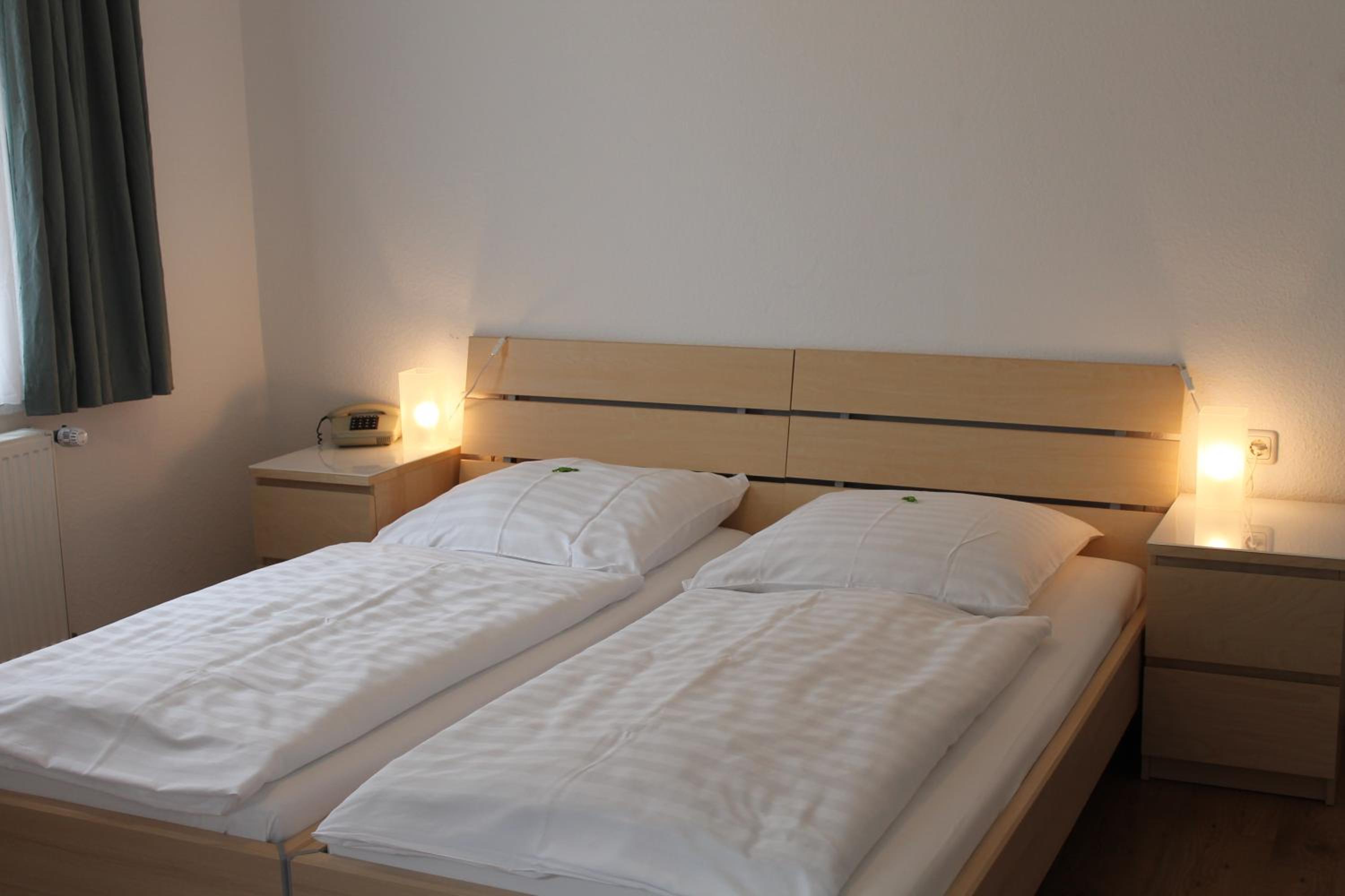 Alles war etwas schäbig, und statt Doppelbett gab es zwei einzelbetten .