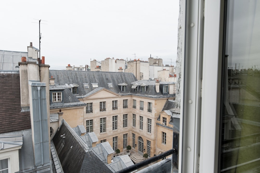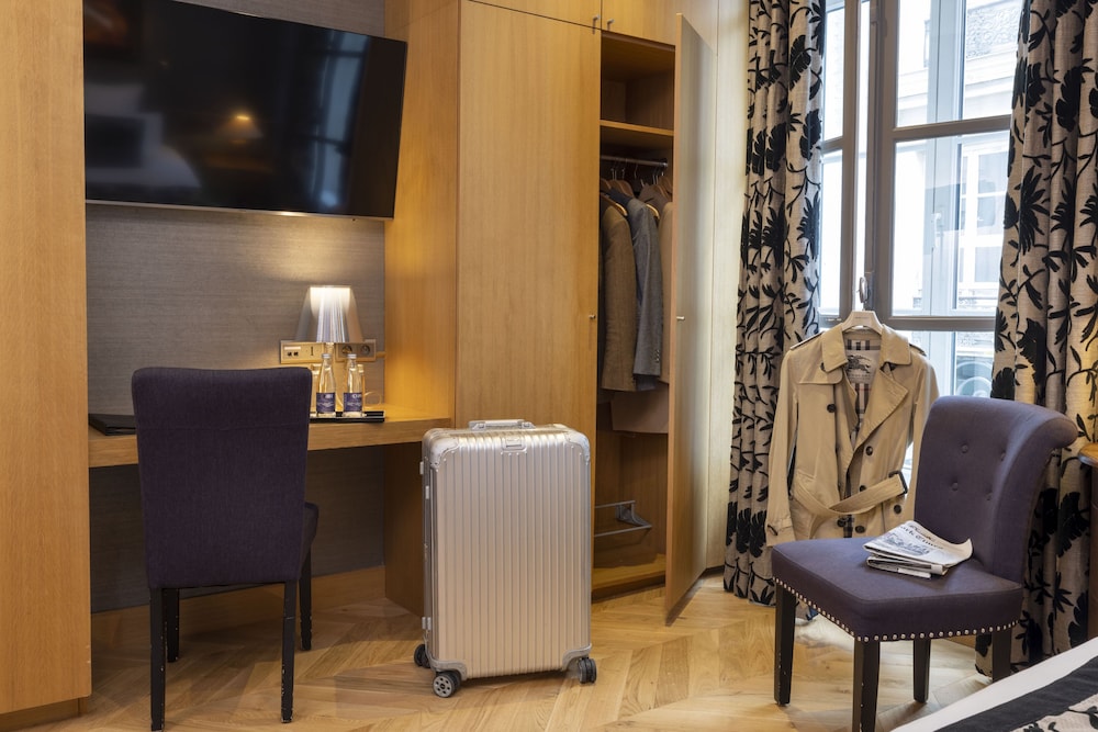 Beautiful hotel in a central location for visitors - great spot for walking to many of the Paris highlights. On a quiet side street, rooms have a/c and a small fridge. Luxurious bedding and towels, friendly and helpful staff, and a beautiful sitting area for breakfast or an evening drink. Definitely a gem and worth checking out.