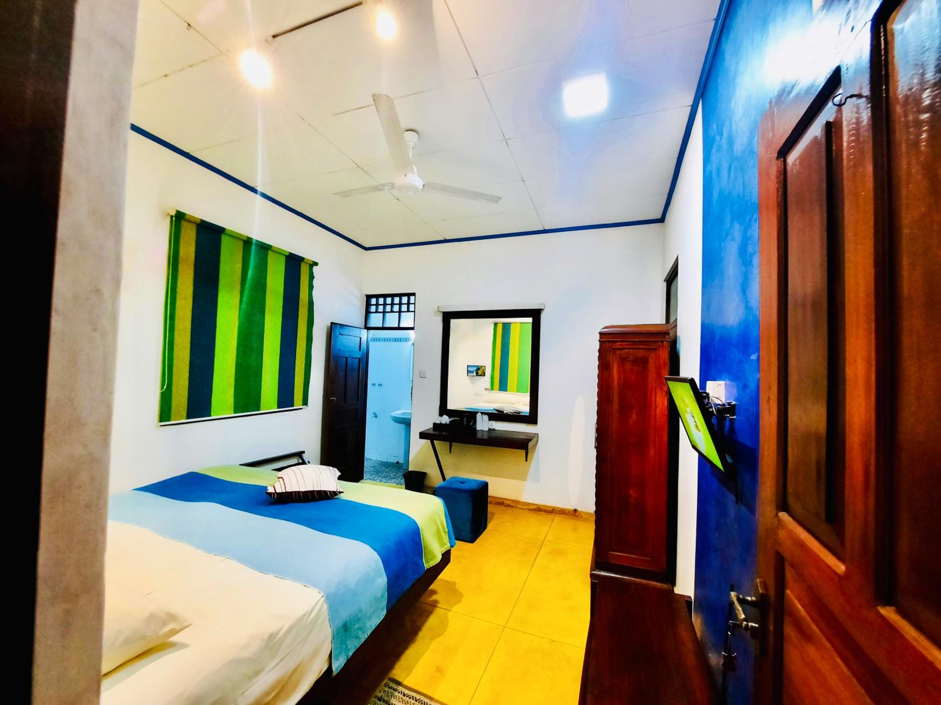 It's a simple but nice hotel, the first stop of our trip. The family that runs it is super friendly, welcoming and helpful! We got a fruit juice when we arrived and they also made a delicious Sri Lankan breakfast in the morning. They also helped with any problems/ questions we had. The rooms are clean and have good AC, a mosquito net and a fridge. The bathroom looked a little bit older, but the water was hot and the water pressure was good! The hotel is good value for your money.