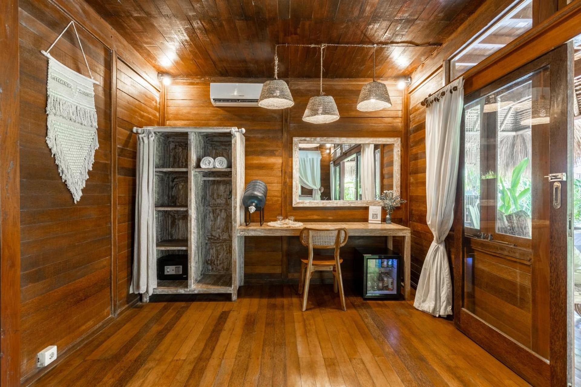 Each tastefully decorated room features wooden flooring, air conditioning, and a private terrace option overlooking the garden and pool, providing a chic and comfortable retreat.