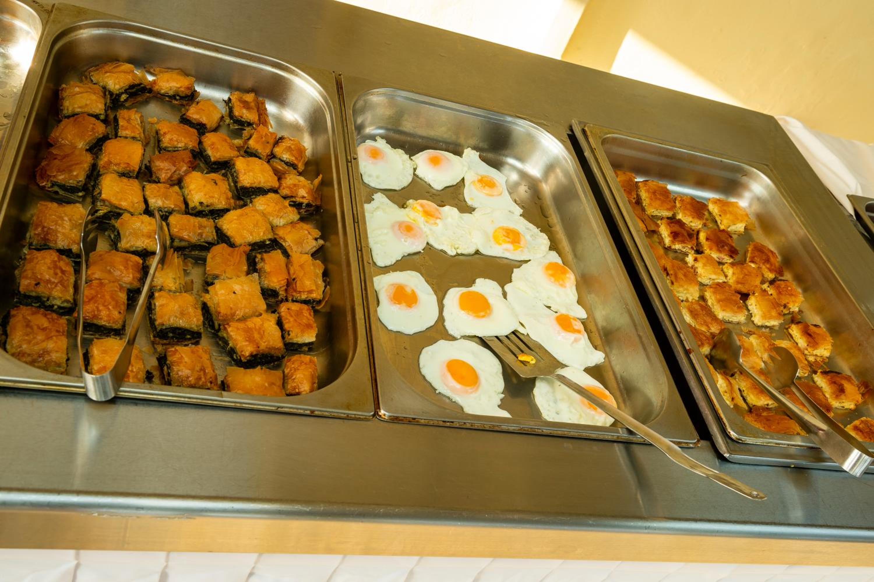 Indulge in delicious Greek cuisine at the a la carte restaurant in the lobby or savor breakfast at the Roof Garden on the fifth floor. The pool bar also serves a variety of snacks and cocktails for a relaxing day by the pool.