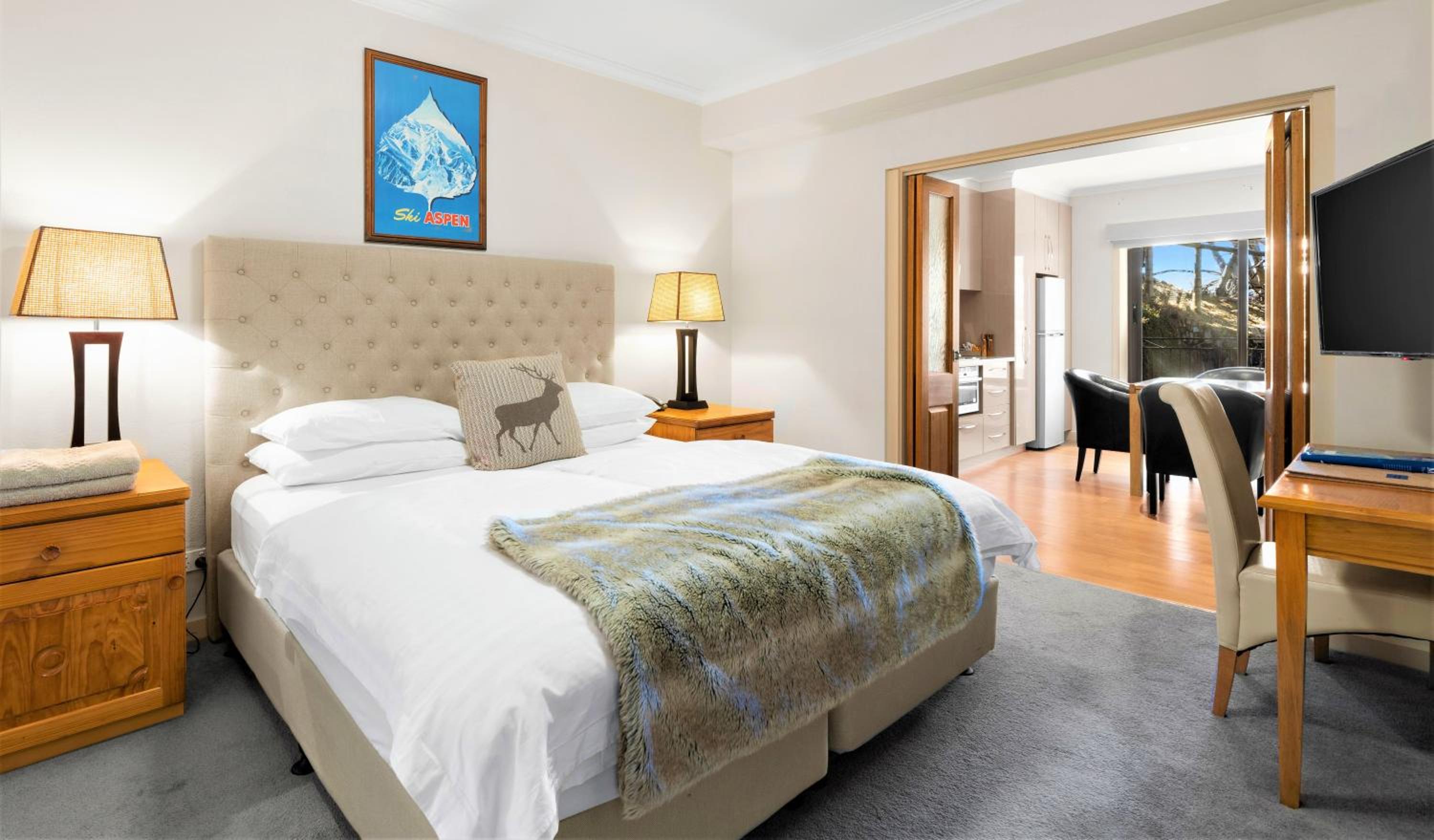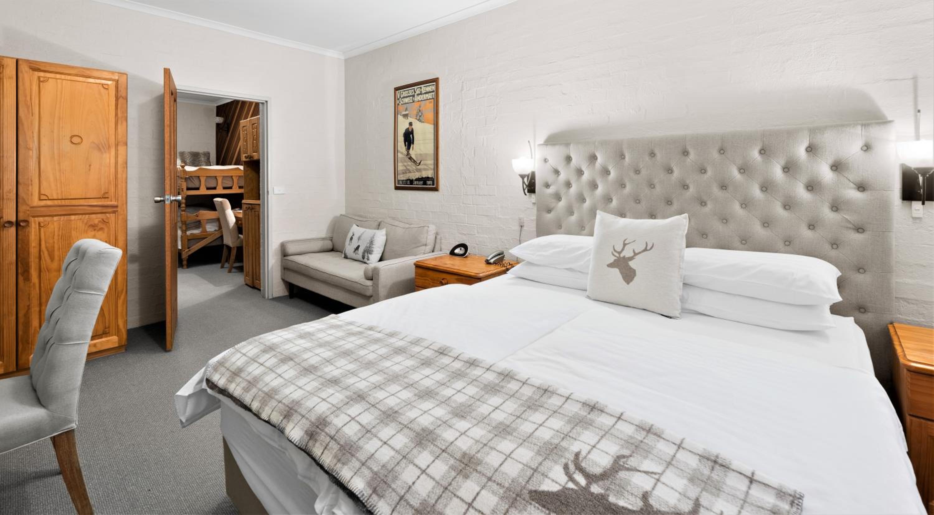 Indulge in our luxuriously appointed apartments and spacious chalet style hotel rooms, each equipped with modern amenities and stylish decor.