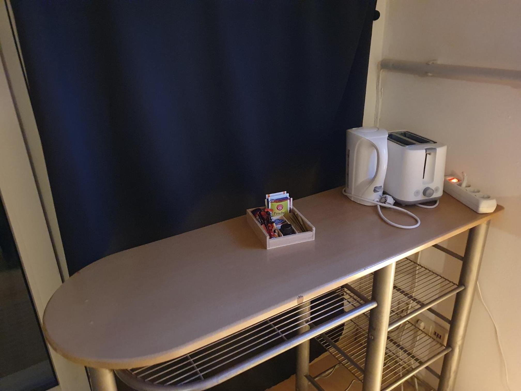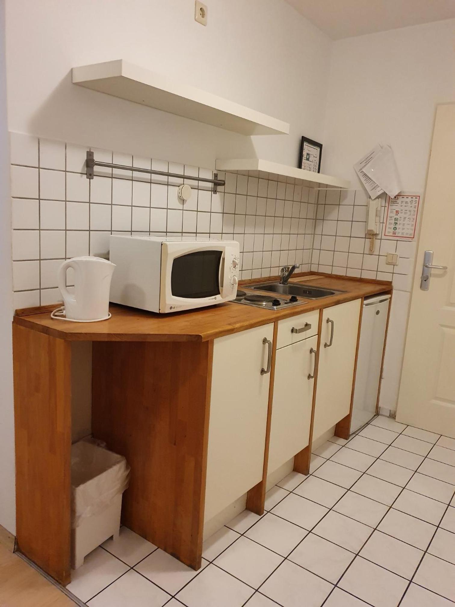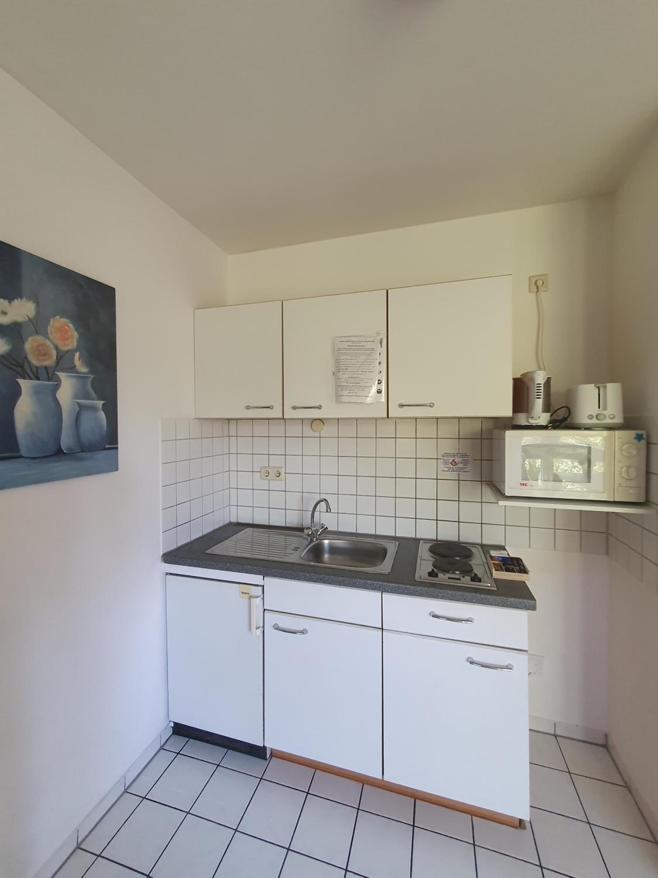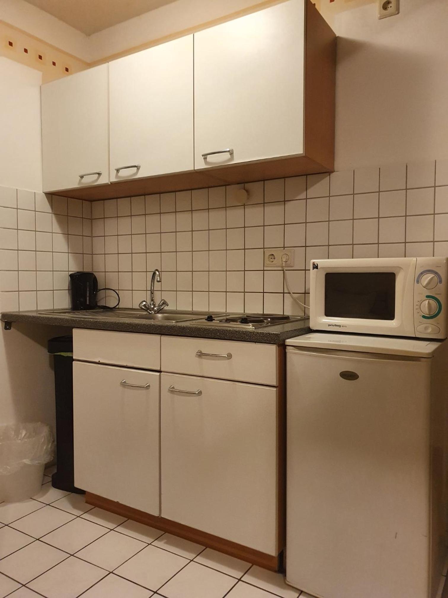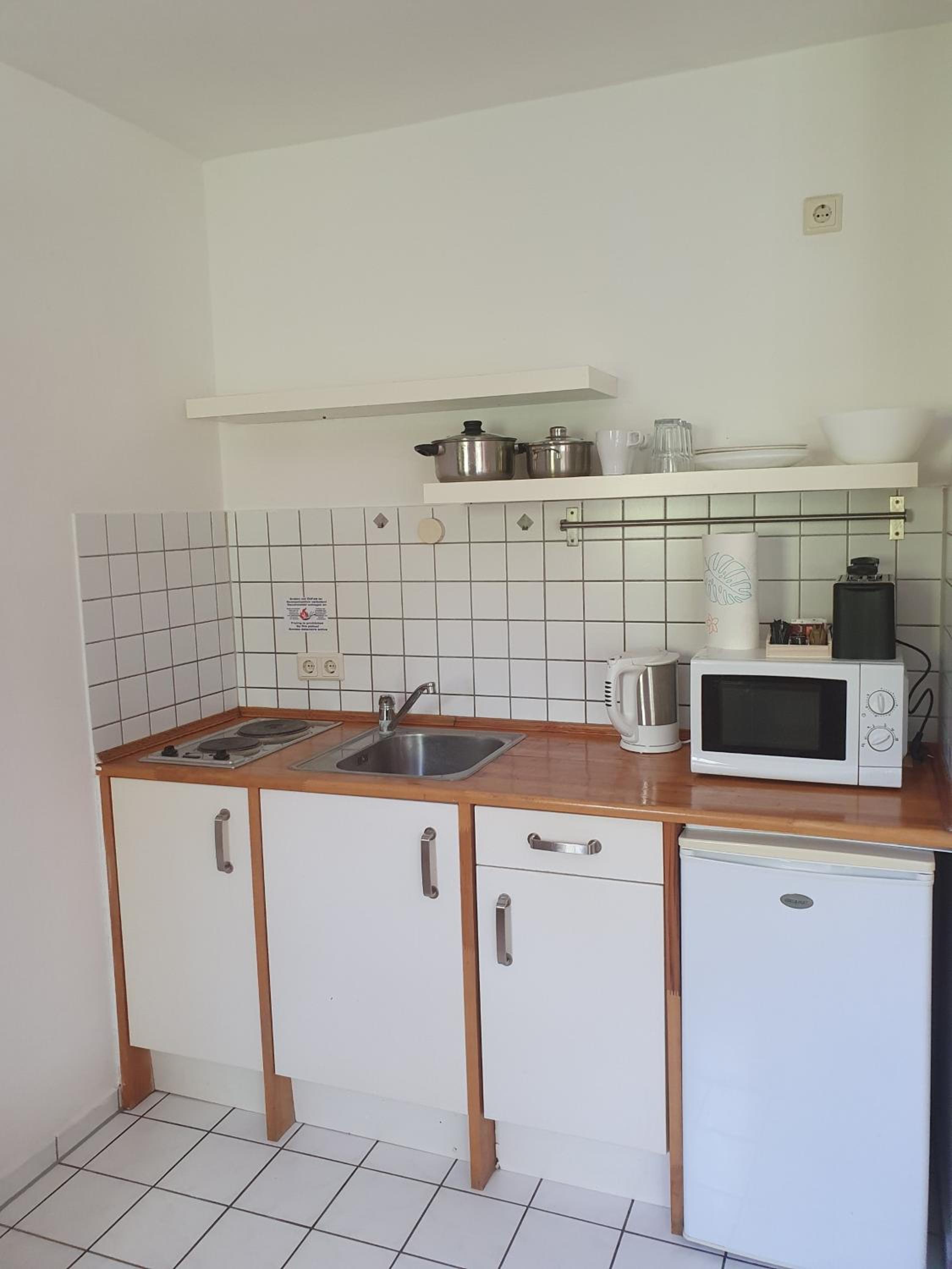 Die Ausstattung der "Küche" ist sehr spärlich. Es gibt einen Topf, keine Schüsseln usw. Also - irgendwas außer Eier kochen - fast unmöglich.