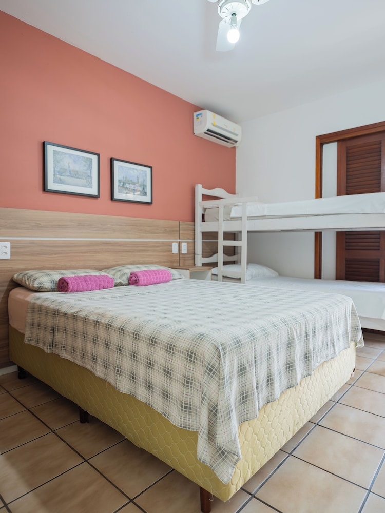 Ficamos em um apartamento com dois quartos. Bem espaçoso, vale a pena para ficar vários dias na praia.
