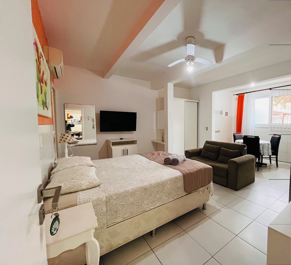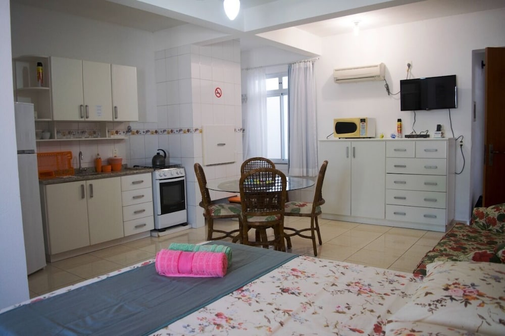 Excelente custo x benefício. Apartamento de 1 quarto simples, mas bem completo. Localização ótima a 2 quarteirões da praia, e 3 de vários restaurantes. Preço ótimo para a região.