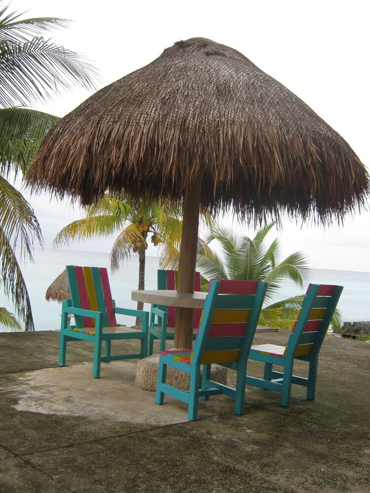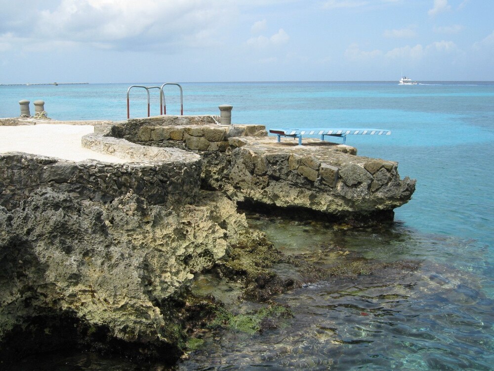 This small eight unit condominium is a no-frills, private get-away that is sure to please anyone trying to avoid the maddening crowds. All units are pure ocean view, from the living room to the bedroom. The kitchen is nicely equipped and stocked with groceries for purchase at a reasonable price. Some of the best snorkeling you'll find is right outside the door. From the private beach you can jump off the diving board into the ocean. (Or use the ladder if that's more your speed!) The staff (Sara is a gem!) will accommodate your needs and answer your questions. The second floor has a balcony, which we took advantage of nightly. There is daily maid service.