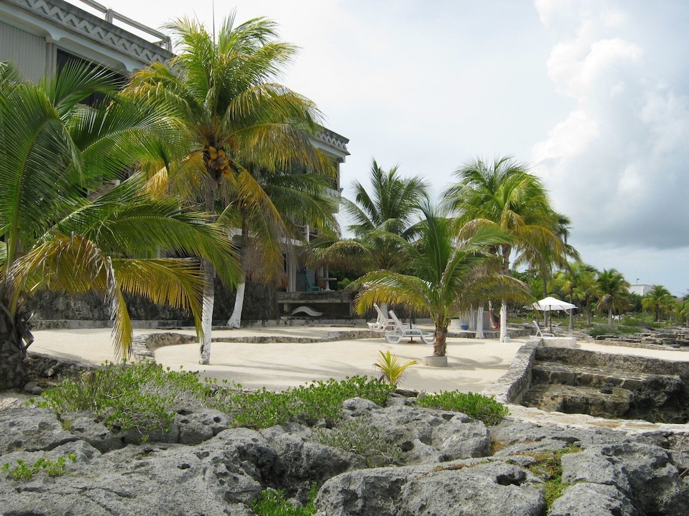 This is a gem! The condo is located right on the beach and provides you with your own private beach. Staying here made our family feel like it was secluded and far removed from the tourists. The kitchen comes stocked with food basics (eggs, bread, butter etc) and drinks that you pay a small fee if used. This was a great way to enjoy our time on the beach without having to leave to get meals or worry about getting showered and ready to go a breakfast buffet. But, walking to town to get a meal is just minutes away and there are many great restaurants available (try the ones off he beaten path instead of the restaurants aimed at tourists on the main drag). This location is quiet and peaceful and the views from the condo are amazing. There is a diving board and ladder right in front of the building to snorkel all day on your private area. There is snorkeling gear to use and the owner, Bill, owns a dive shop if that is your objective to being in Cozumel. The room is kept clean everyday - inside and out - and the staff is friendly and very helpful including providing flash-lit accompaniment to your condo door from the sidewalk on dark evenings. Neighboring iguanas are a bonus :)