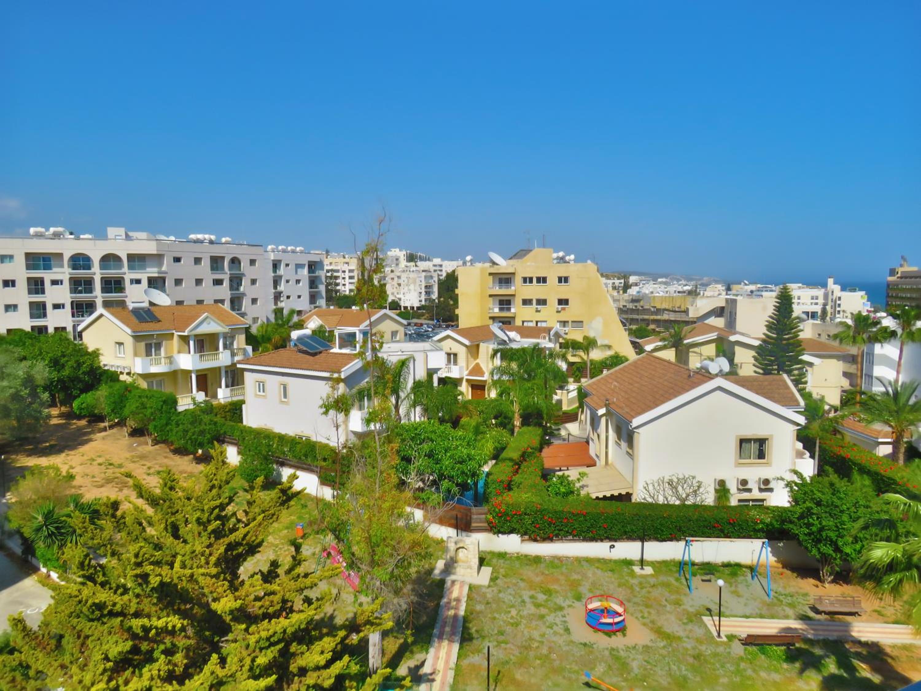 Relax in our spacious apartments featuring furnished balconies or patios with picturesque views of the pool, garden, and Mediterranean Sea. Each apartment includes separate bedrooms, a kitchenette, and entertainment options like a TV with multiple channels.