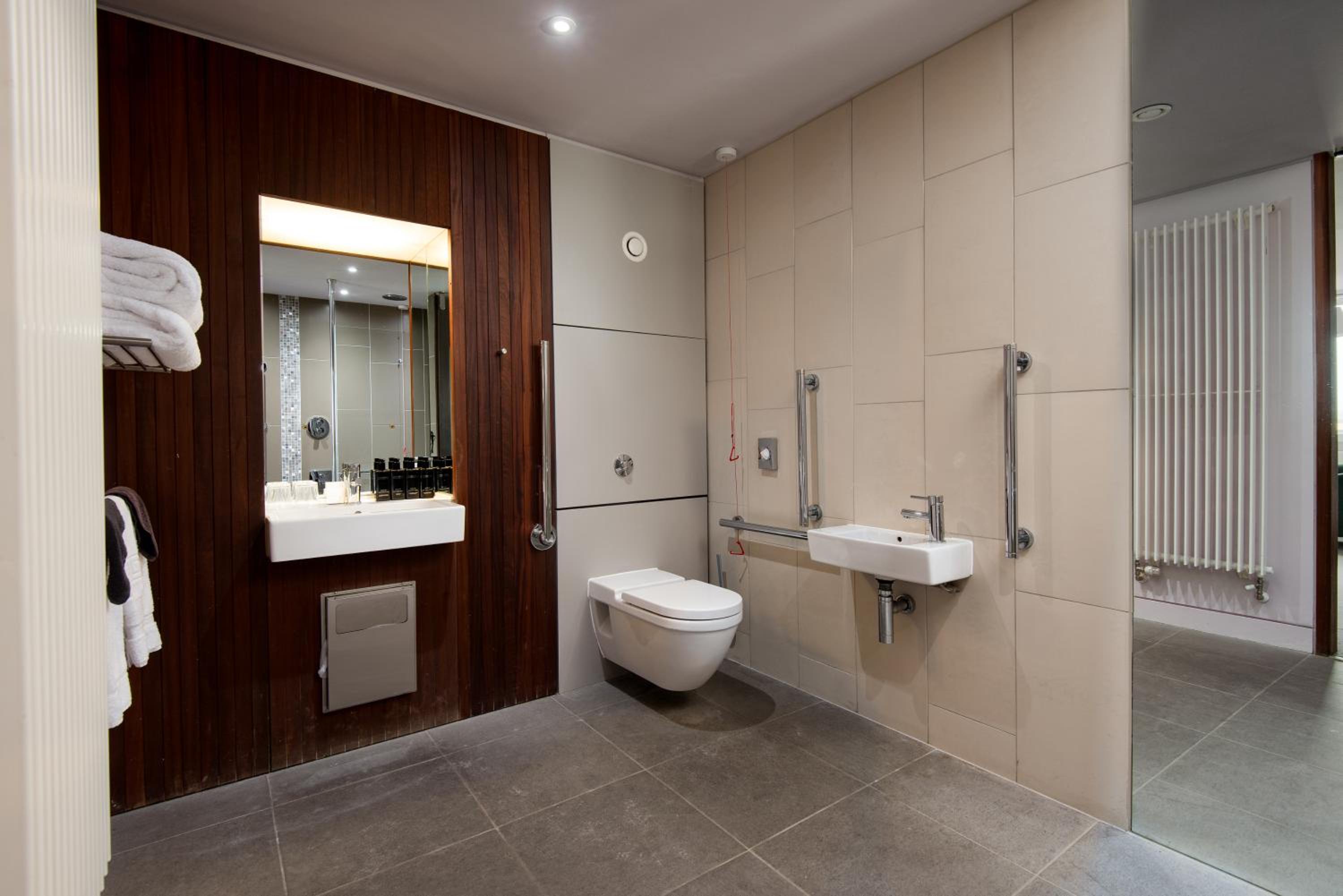 Drinks pricey, £7 a pint, we stay regularly in a 5 star hotel in Bo'ness lake district and only £5 a pint in their cocktail bar. Room spacious but strange layout (especially the toilet. Wall paper coming off the walls, lots of mould in shower cubicle, shower itself not very warm, double bed was 2 single beds put together and binoculars required if wanting to watch tv from the bed. I didn't realise the hotel was dog friendly and on first entering the room I could tell that it was a dog friendly hotel ( I am quite sensitive but I can smell dog anywhere if the rooms aren't cleaned properly when dogs have been present. Overall poor quality room for £205 a night