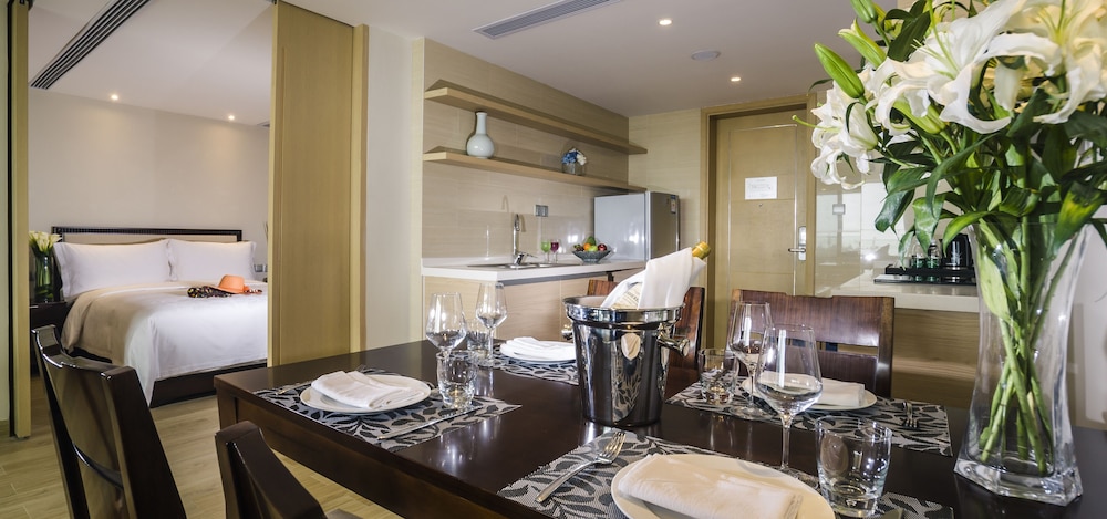Make yourself at home in one of the 200 air-conditioned rooms, each equipped with LCD televisions, complimentary wireless internet, and elegant bathrooms with premium toiletries provided.