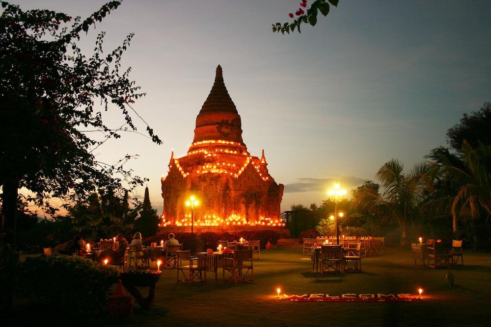 The hotel is in new bagan which means that if traveling buy yourself then you will definitely need some sort of transport to see the pagodas and stupas. Also there is not much choice in terms of restaurants near by but the one at the hotel has a great atmosphere.