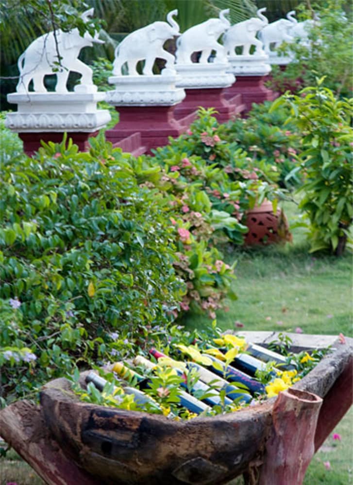 Beautiful garden with an old Stupa that was lighted with candles and Christmas lights in the evening. We were not able to use the pool since the water was ice cold.