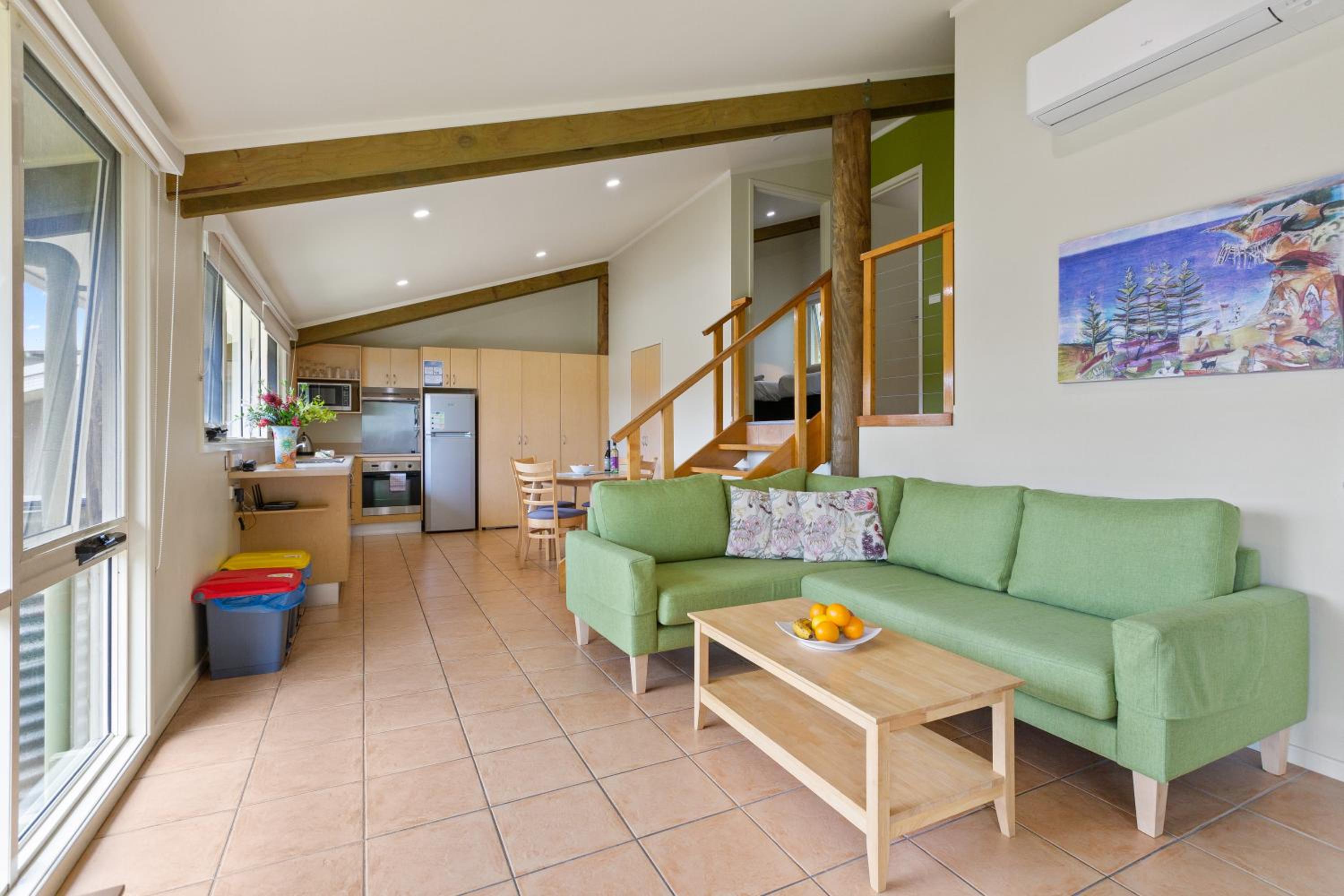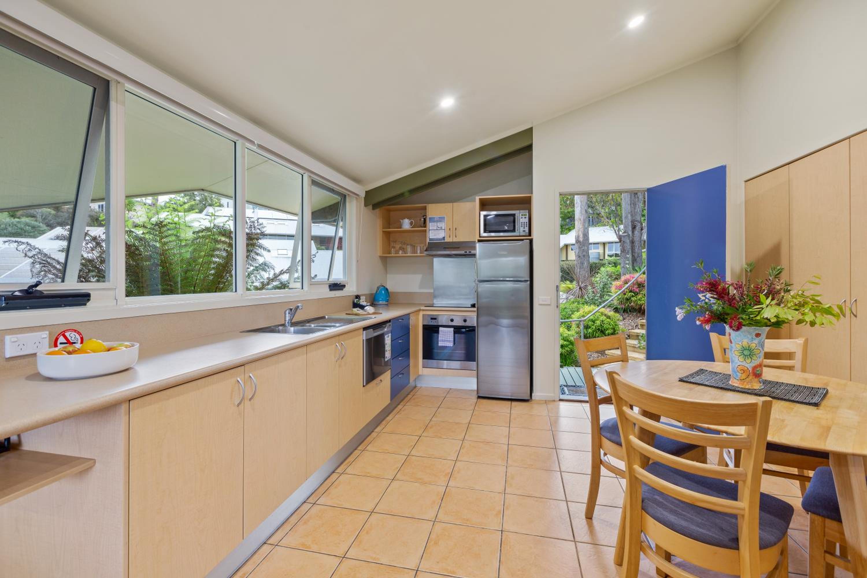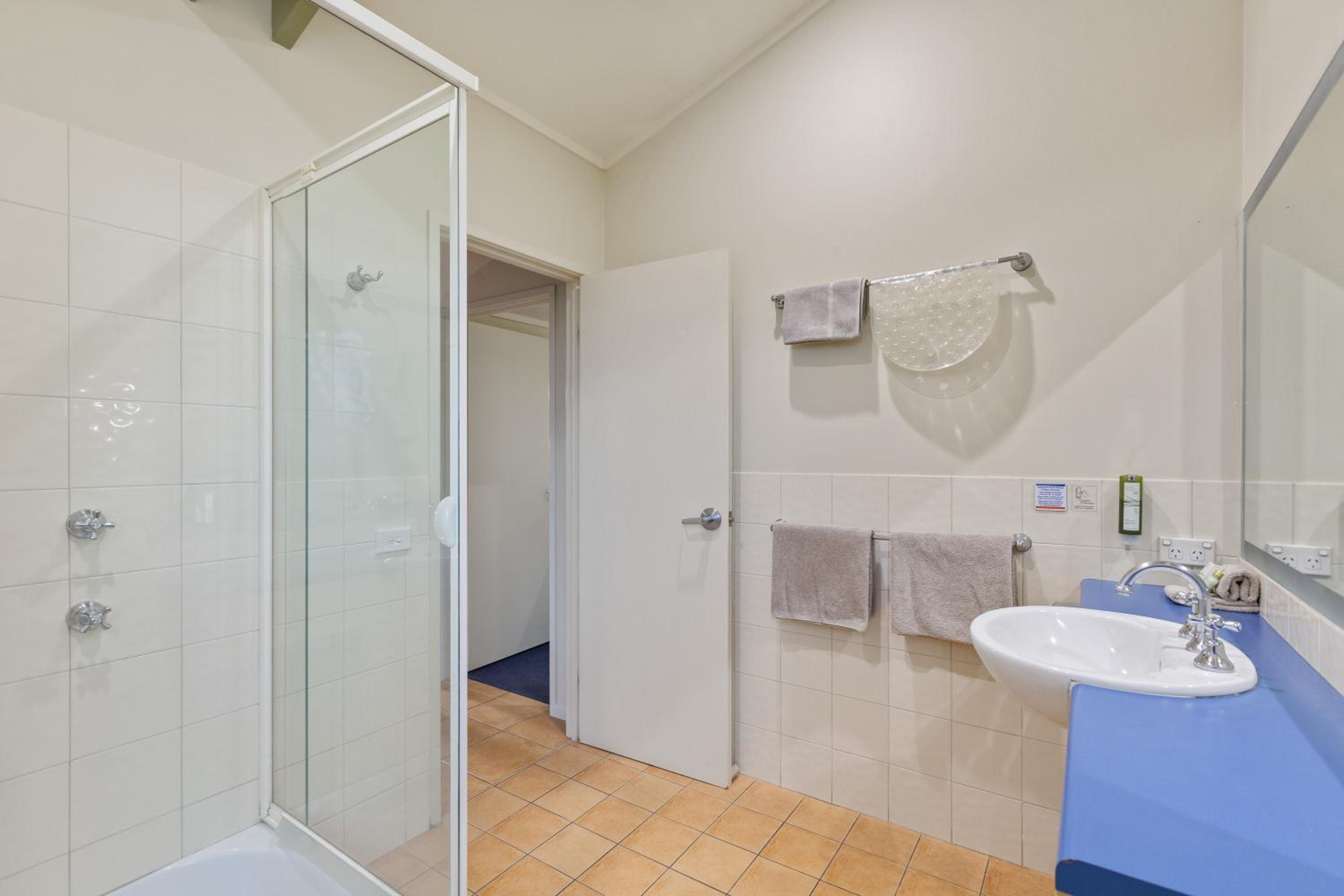 Access to beach across road. Bakery, pharmacy and Bowling club for a meal across the road. Staff accommodating when you ask for towels etc.