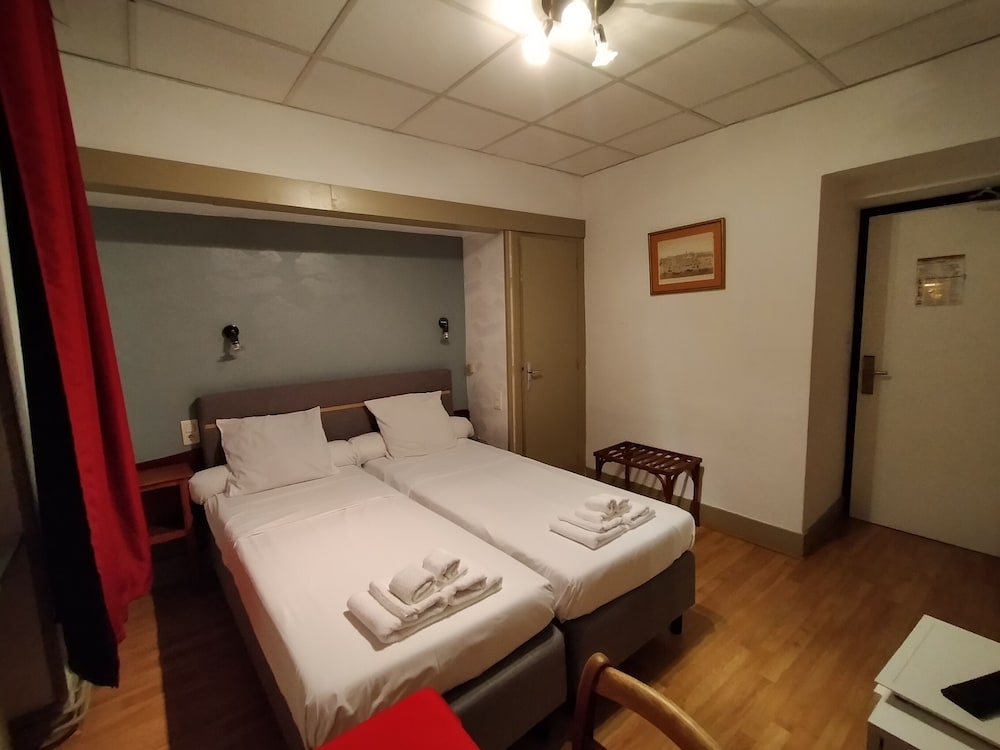 Hôtel vieillot, en particulier l'accès qui ne donne pas envie d'entrer, une fois ce passage franchi l'intérieur nécessiterait un coup de jeune mais le ménage est satisfaisant. Cet hôtel a l'avantage d'être situé en plein cœur de la ville mais ce qui a entraîné, pour nous, un accès très difficile lors du weekend de pentecôte où les parkings étaient saturés. L’accueil est sympathique et le personnel serviable.