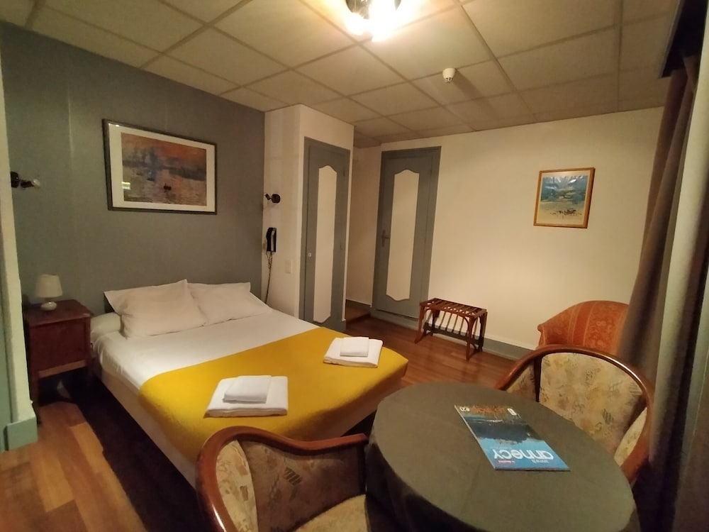 Annecy 의 주요 지점을 아주 편안하게 즐길 수 있는 위치. 차량을 가져갔었는데, Hotel de ville (시청) 주차장에 무작정들어갔었고, 결국엔 그것이 최선의 선택인것을 알게 되었습니다. 4인 가족이 숙박을 하였고, 침대는 아주 넉넉. 시설은 약간 노후 하였지만, 비교적 잘 관리 되는 편이고, 무엇보다도 호텔 주인 아저씨가 너무 친절하고 상냥 하여서 기분이 좋았습니다