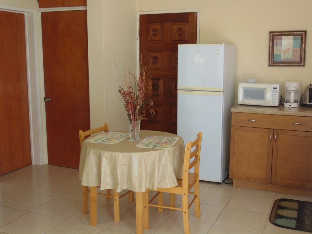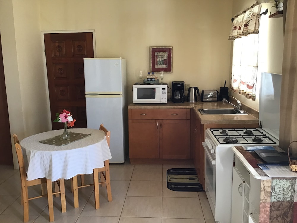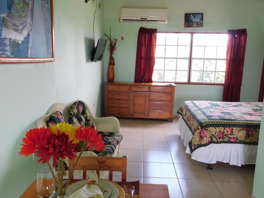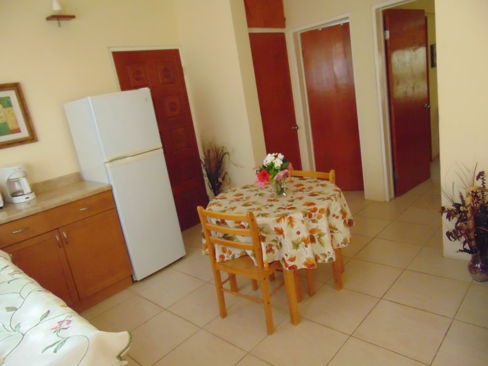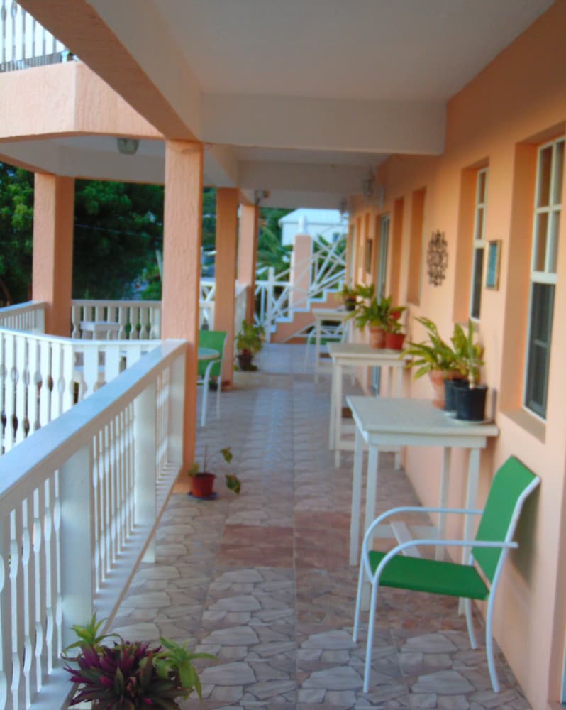 Lovely looking property well maintained with some beautiful plants and flowers in the common areas. I walked to town Dickinson Bay beach, St John’s and the local supermarket while I was there. All doable although St John’s might be pushing it for some. Had ample parking at the property and felt safe at all times. The rooms were great, with effective A/C, comfortable shower and fantastic house service. Plenty of cups and cutlery, even a teapot, available with microwave, coffee making machine, large fridge/small freezer, cooker and grill. Sitting out on the generous verandah in the late afternoon with a drink was a lovely place to be. Personable staff helped make the stay very enjoyable.