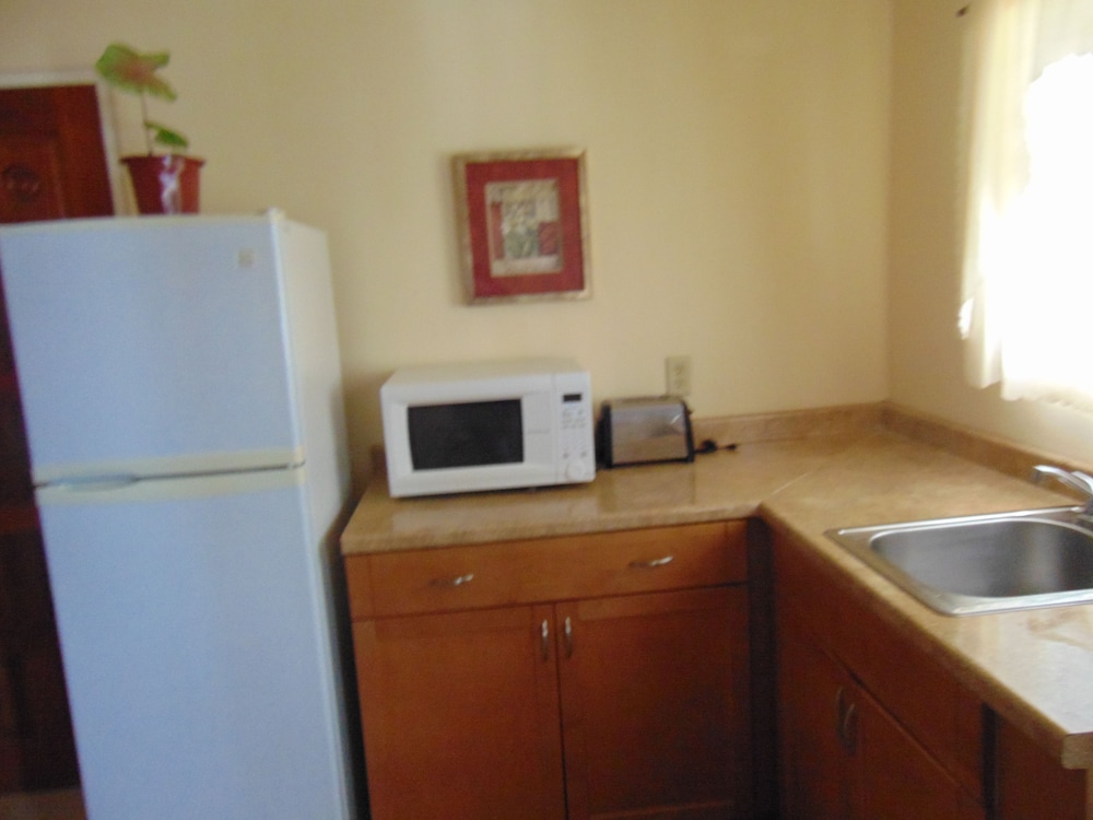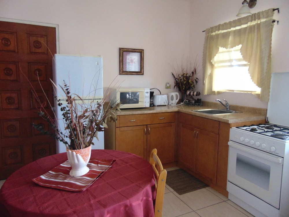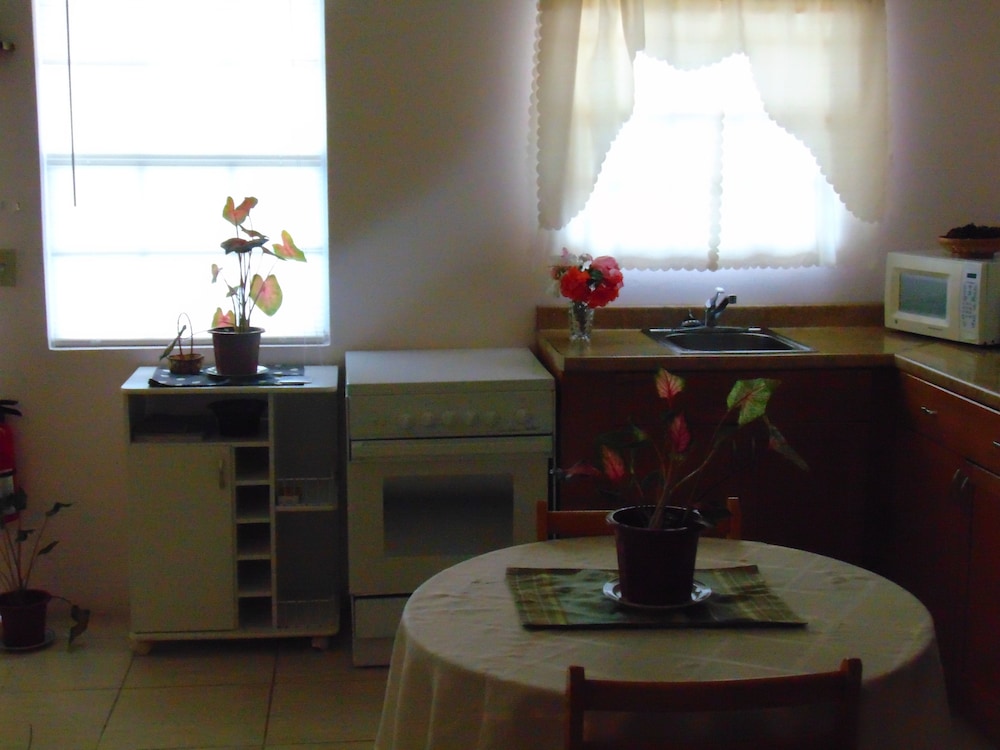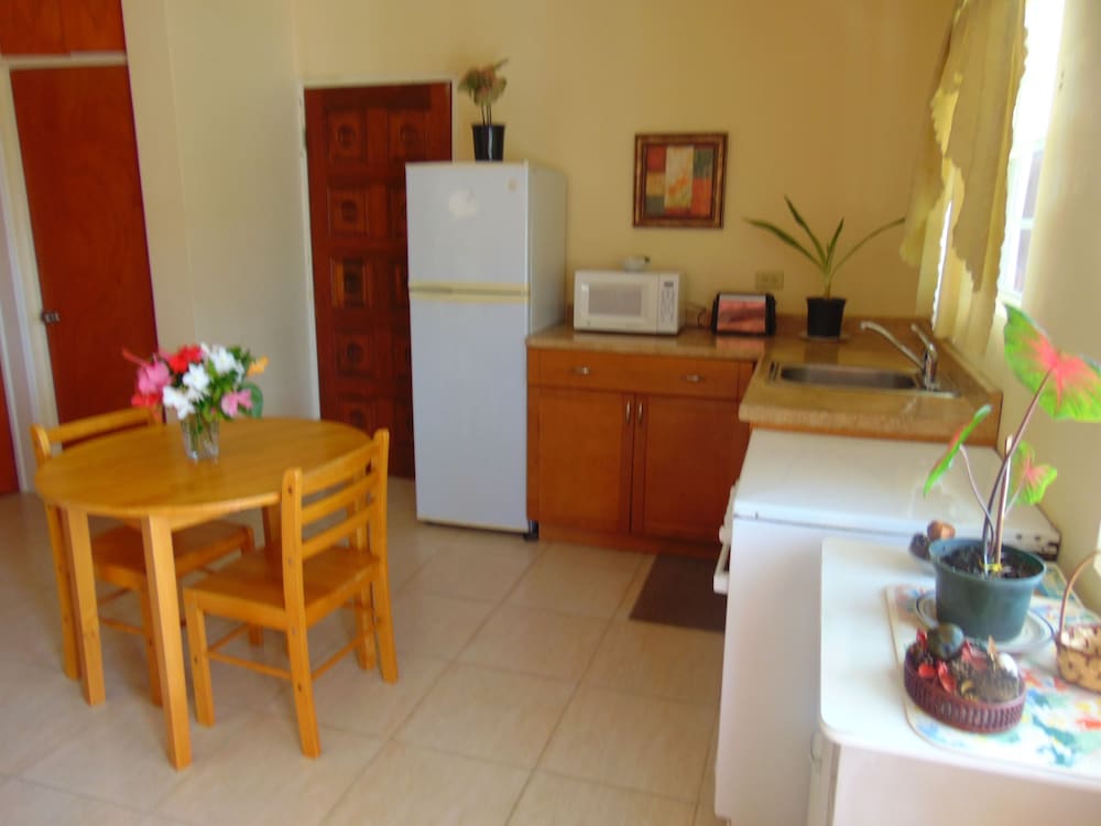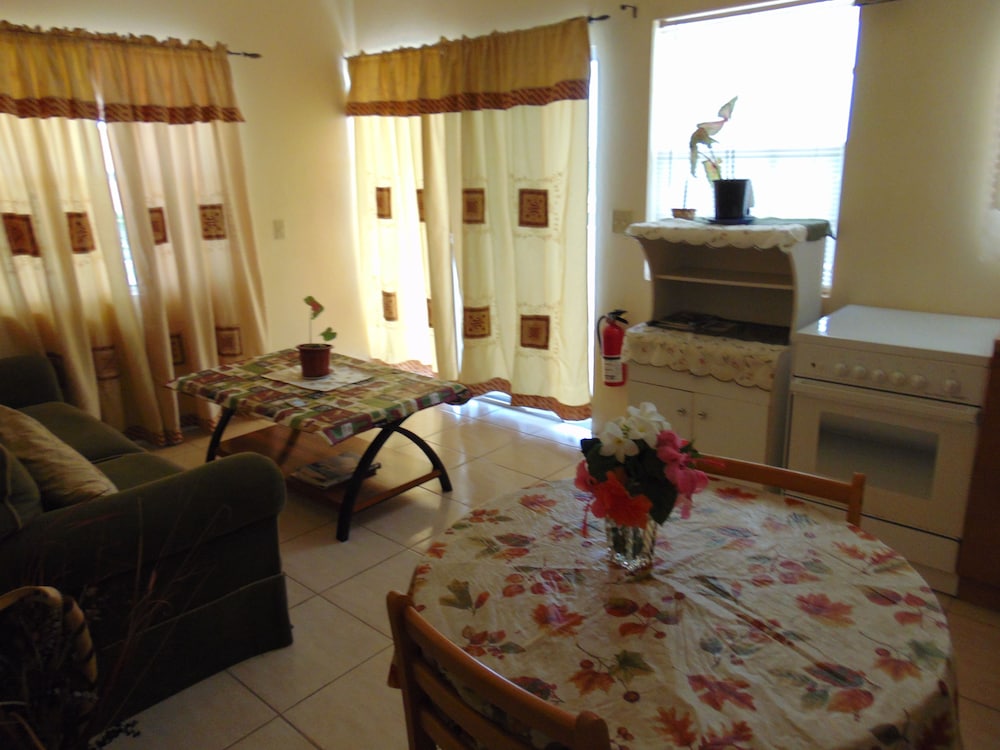 Lovely looking property well maintained with some beautiful plants and flowers in the common areas. I walked to town Dickinson Bay beach, St John’s and the local supermarket while I was there. All doable although St John’s might be pushing it for some. Had ample parking at the property and felt safe at all times. The rooms were great, with effective A/C, comfortable shower and fantastic house service. Plenty of cups and cutlery, even a teapot, available with microwave, coffee making machine, large fridge/small freezer, cooker and grill. Sitting out on the generous verandah in the late afternoon with a drink was a lovely place to be. Personable staff helped make the stay very enjoyable.