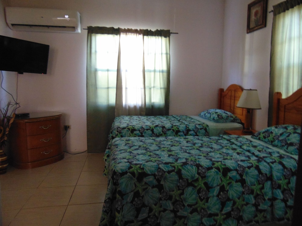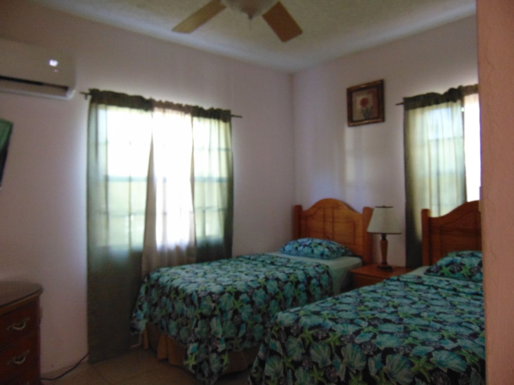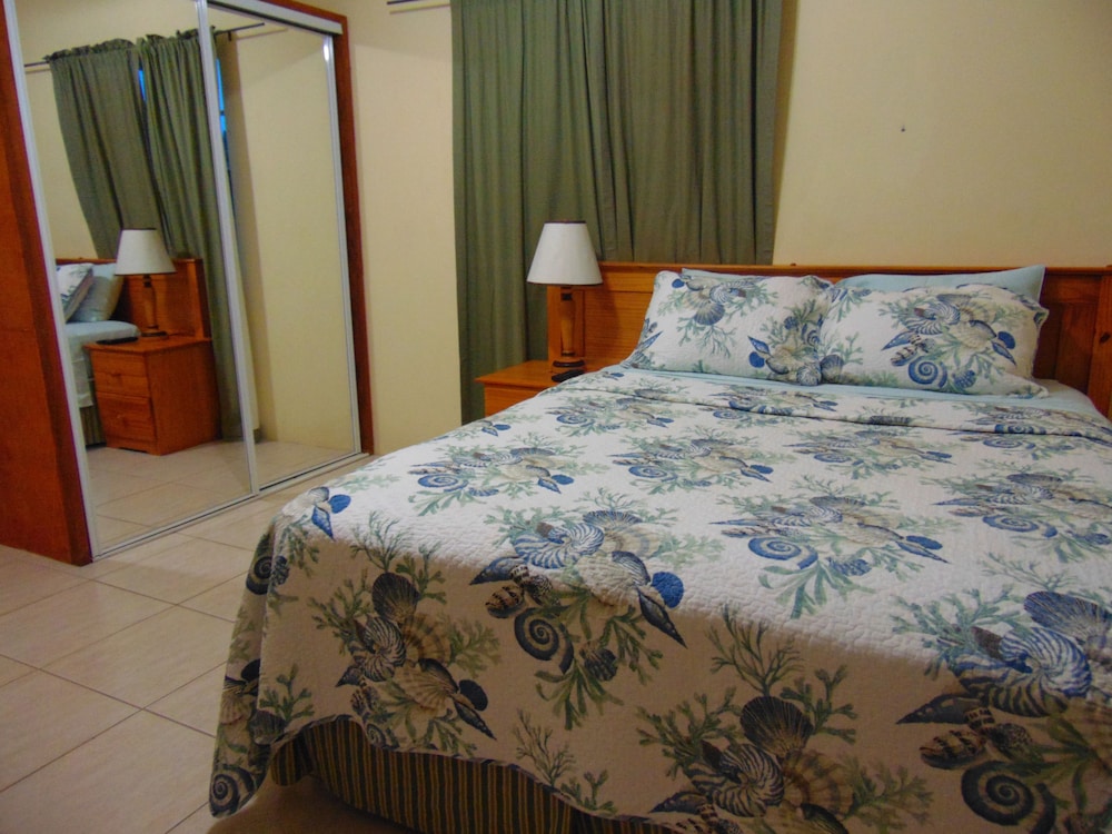 The place is not modern however it was nice for what we needed. The water was hot, the a/c worked. The location was centrally located. We walked to Dickerson Bay which was about 20 minutes. The cab to town was $20 and it’s about 20 mins from the airport or a $25 cab ride.