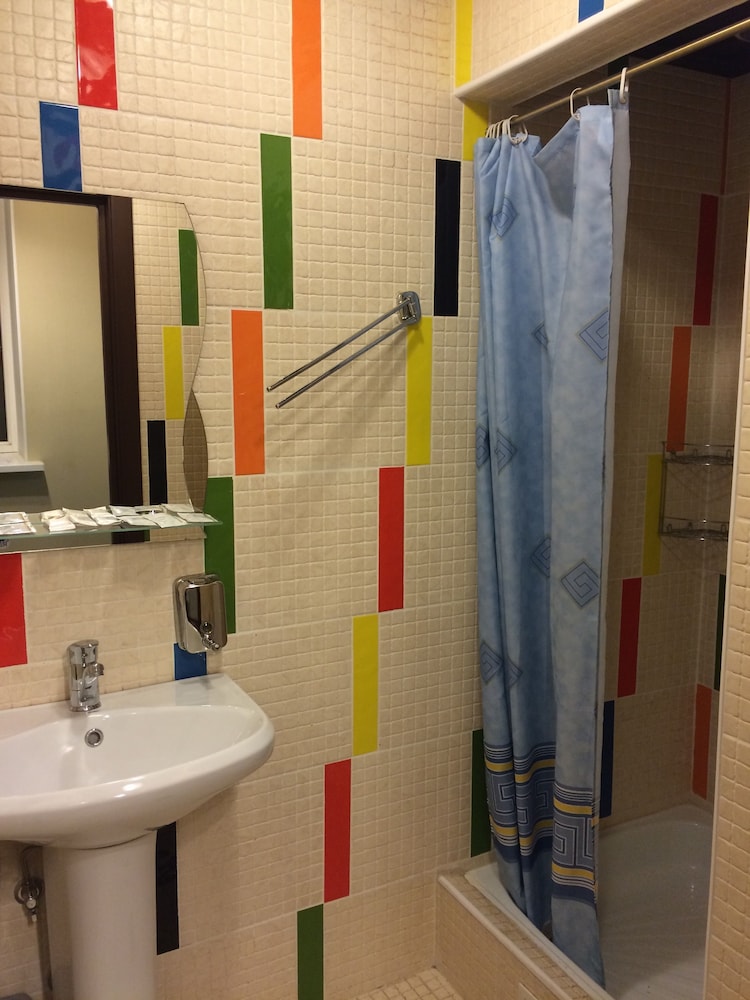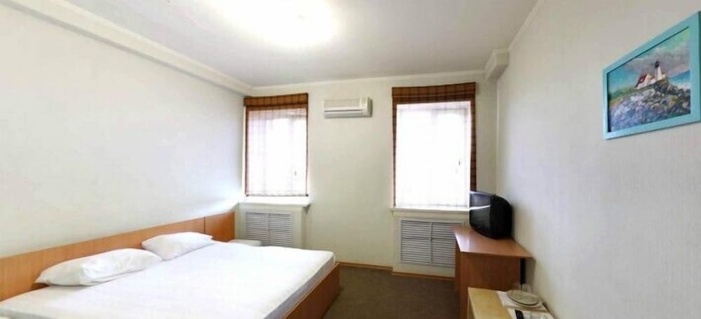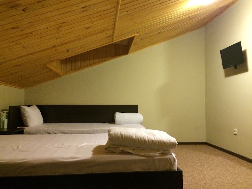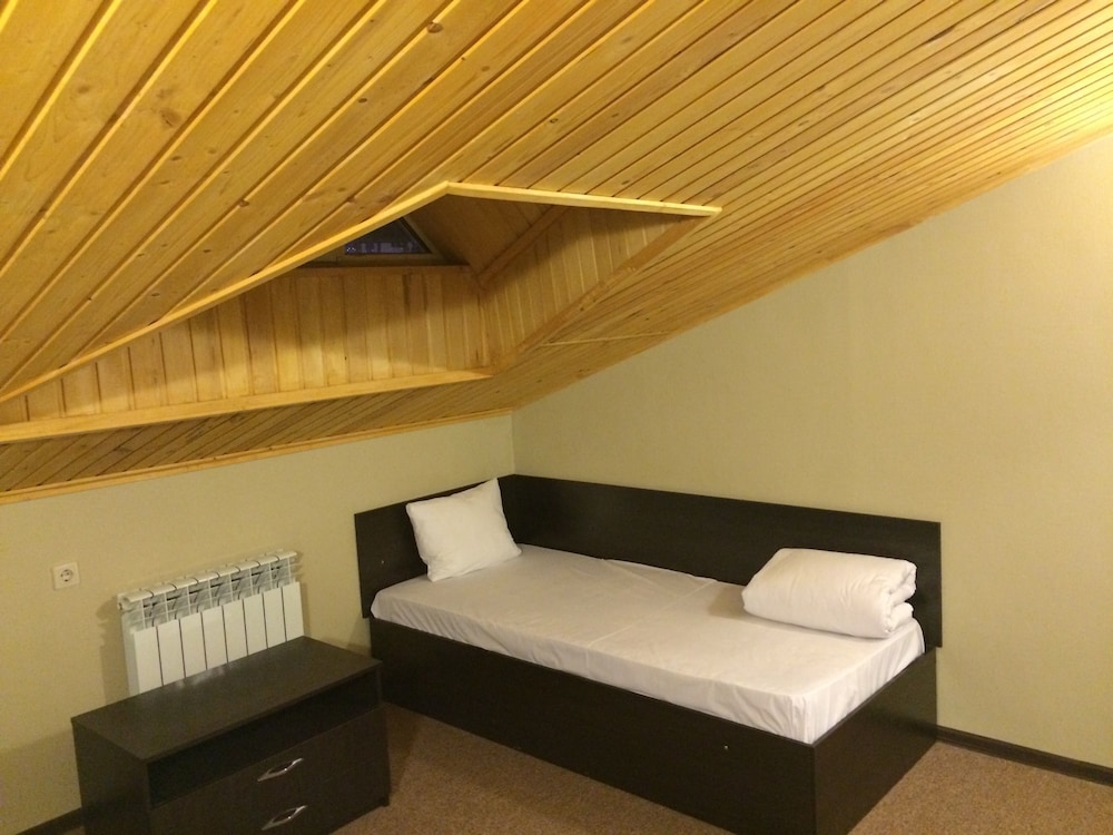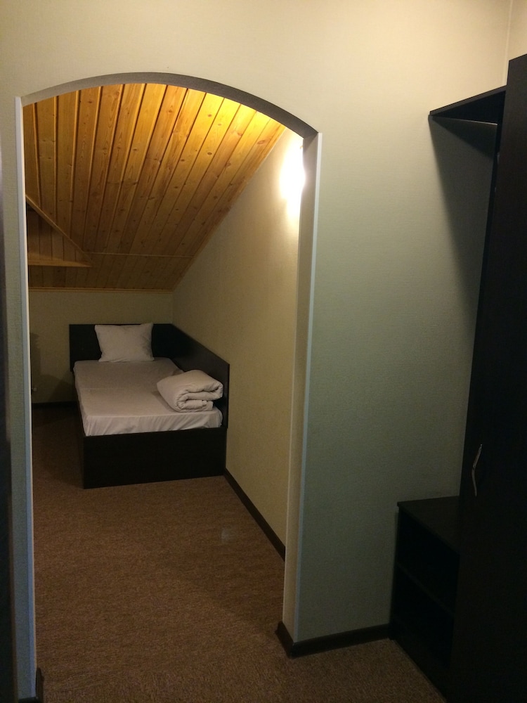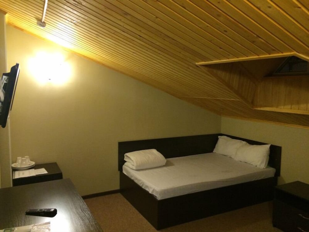 Ужасно без комнатных тапочек на пол нельзя вставать. В душ нужно ходить в резиновых сапогах. Постельное белье как в больнице белое в грязных пятнах. Зашли в кафе нам сказали повара нету мы не можем вам покормить. Ужас.