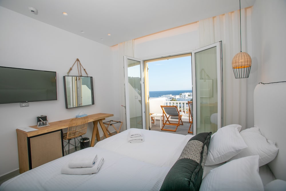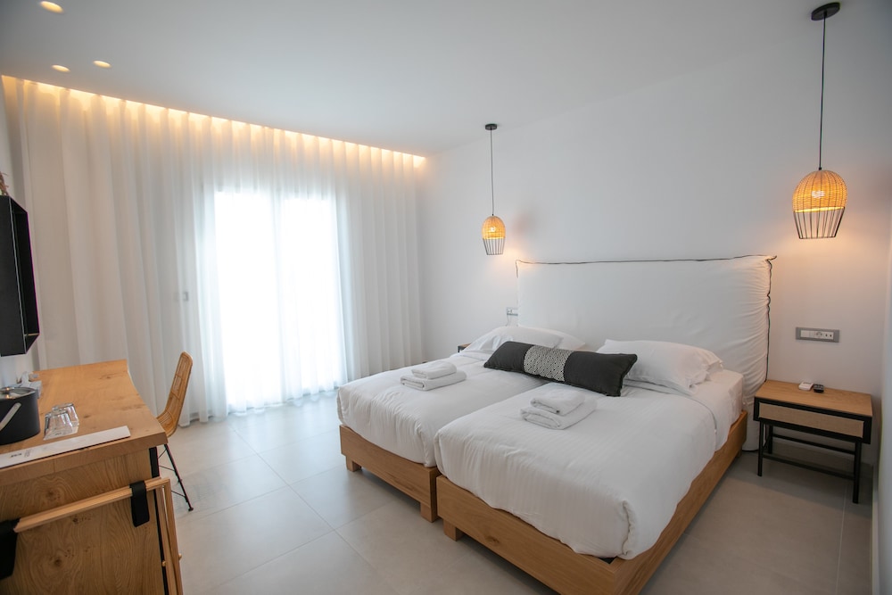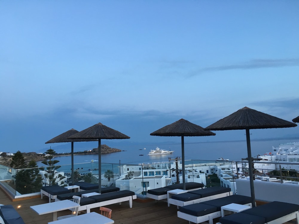 The hotel is a great location just a couple minute walk to the bus stop to take you into Mykonos town. The bar staff of Dimitri and George were so friendly and gave great local recommendations too. Would definitely stay here again.
